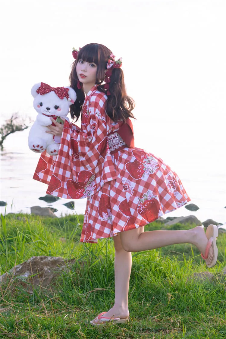 ストロベリーバッグベア ホワイト/ブラック/コーヒー/ピンクのぬいぐるみ
