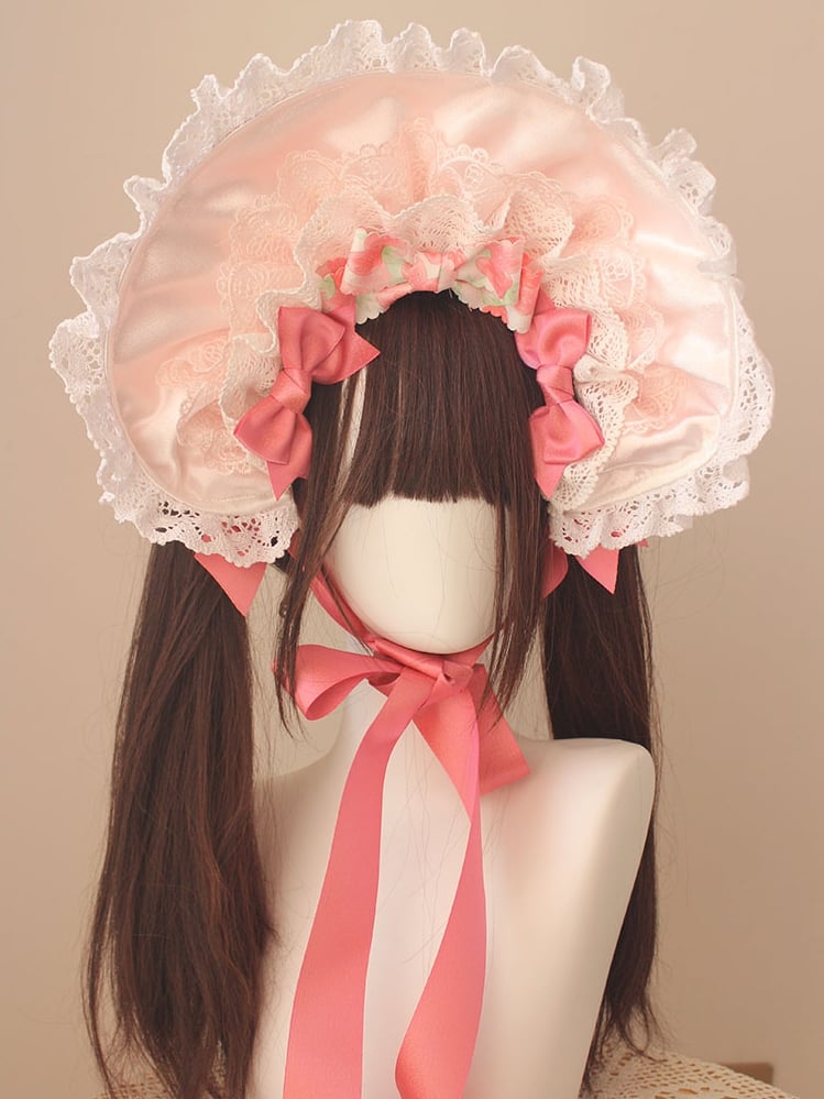 ストロベリーリボンディテール、レーストリム、ピンクのボンネット