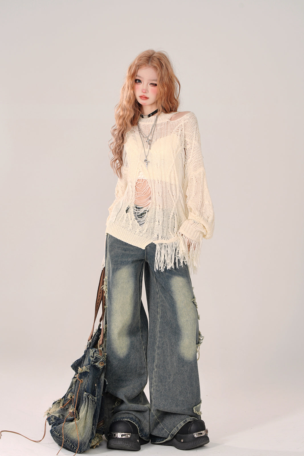 このストリートダメージニットは、柔らかく着心地の良い素材で、可愛らしさと実用性を兼ね備えています。スタイリッシュでありながら温かさもキープ。個性的なデザインで、街で注目を集めること間違いなしです。