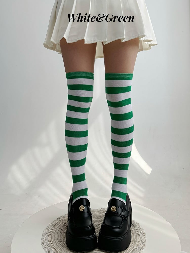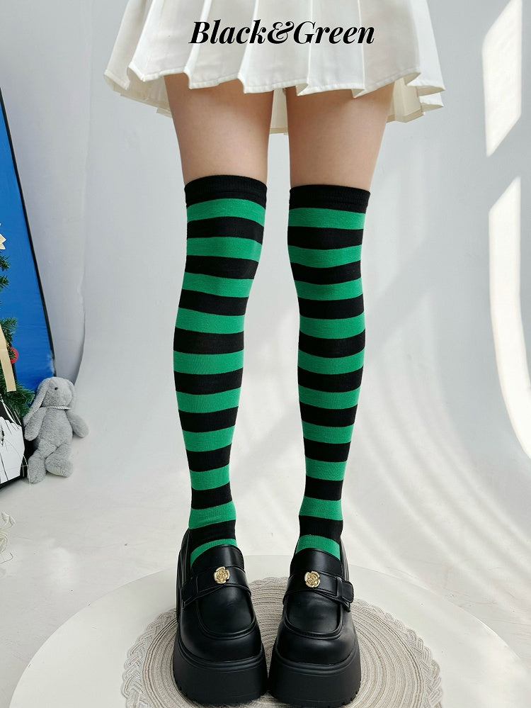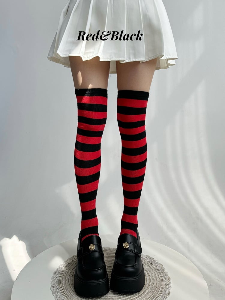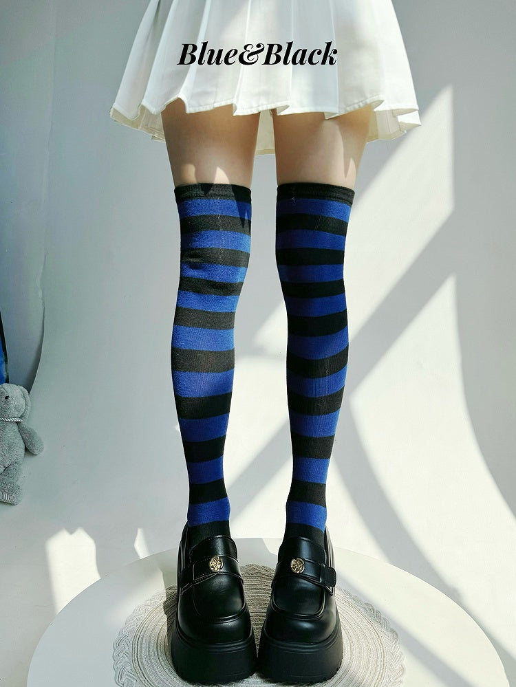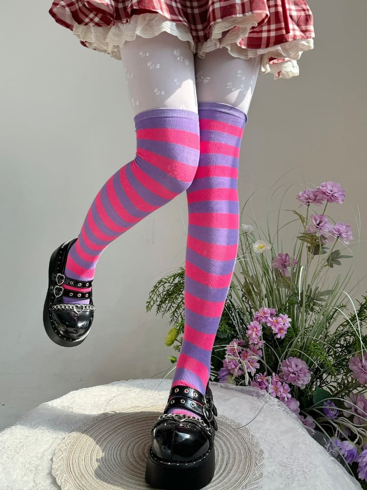 ストライプ柄のロリータオーバーニーストッキングで、あなたの装いにキュートなアクセントを添えてみませんか?遊び心のあるストライプ柄が特徴で、膝上まで心地よくフィットします。どんなスタイルにも華やかさを添えてくれます。