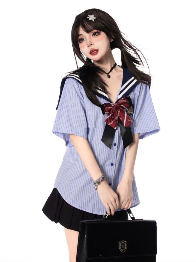 青と白のオールドスクールロリータファッションドレス 蝶結びディテール JSK セット