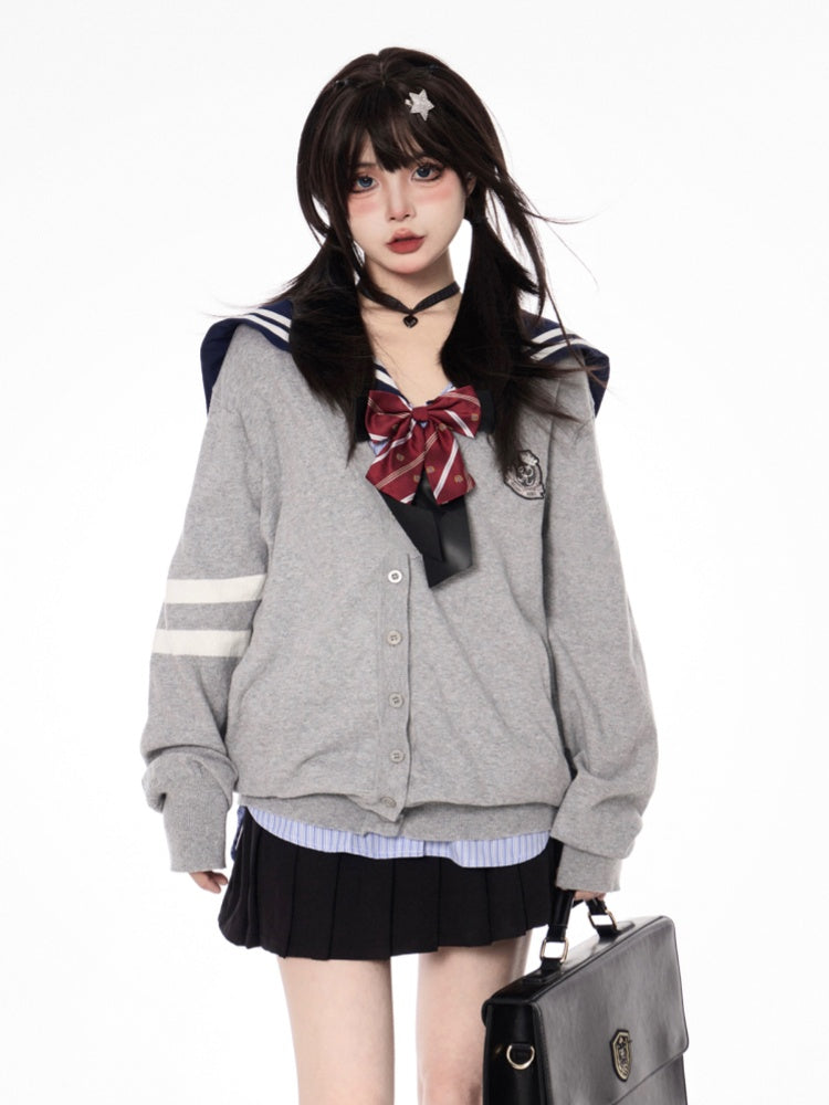 ダブルハートバックル ブラック プレッピースタイル プリーツスカート