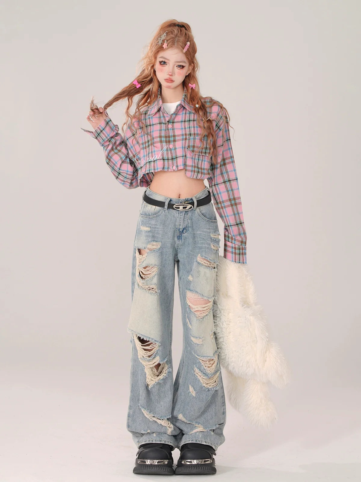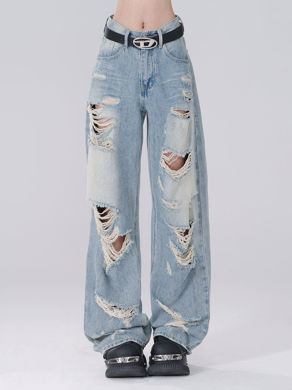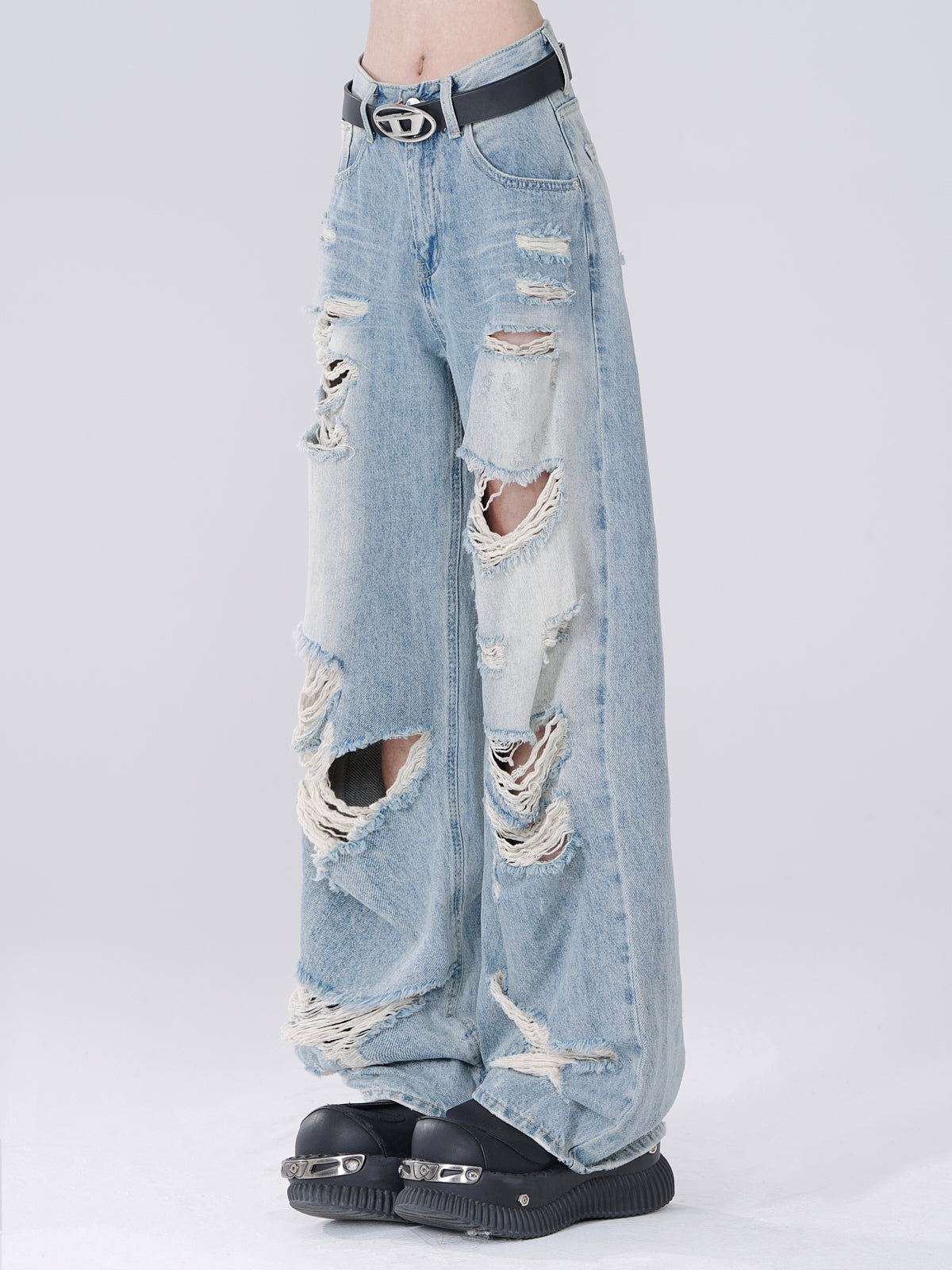スタイルストリートのブルーリップドデニムホールジーンズで、キュートでスタイリッシュなルックを演出しましょう!個性的なダメージ加工デザインが特徴のこのジーンズは、着心地の良さとトレンド感を兼ね備えながら、個性を際立たせます。ワードローブにエッジの効いたスタイルを求める方にぴったりです。