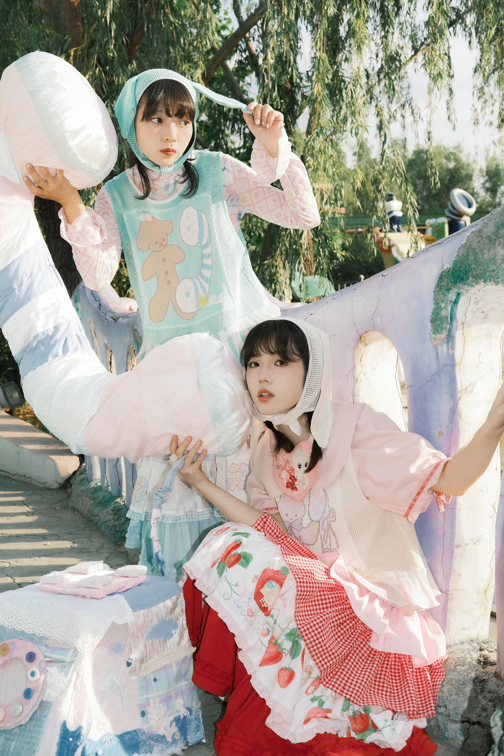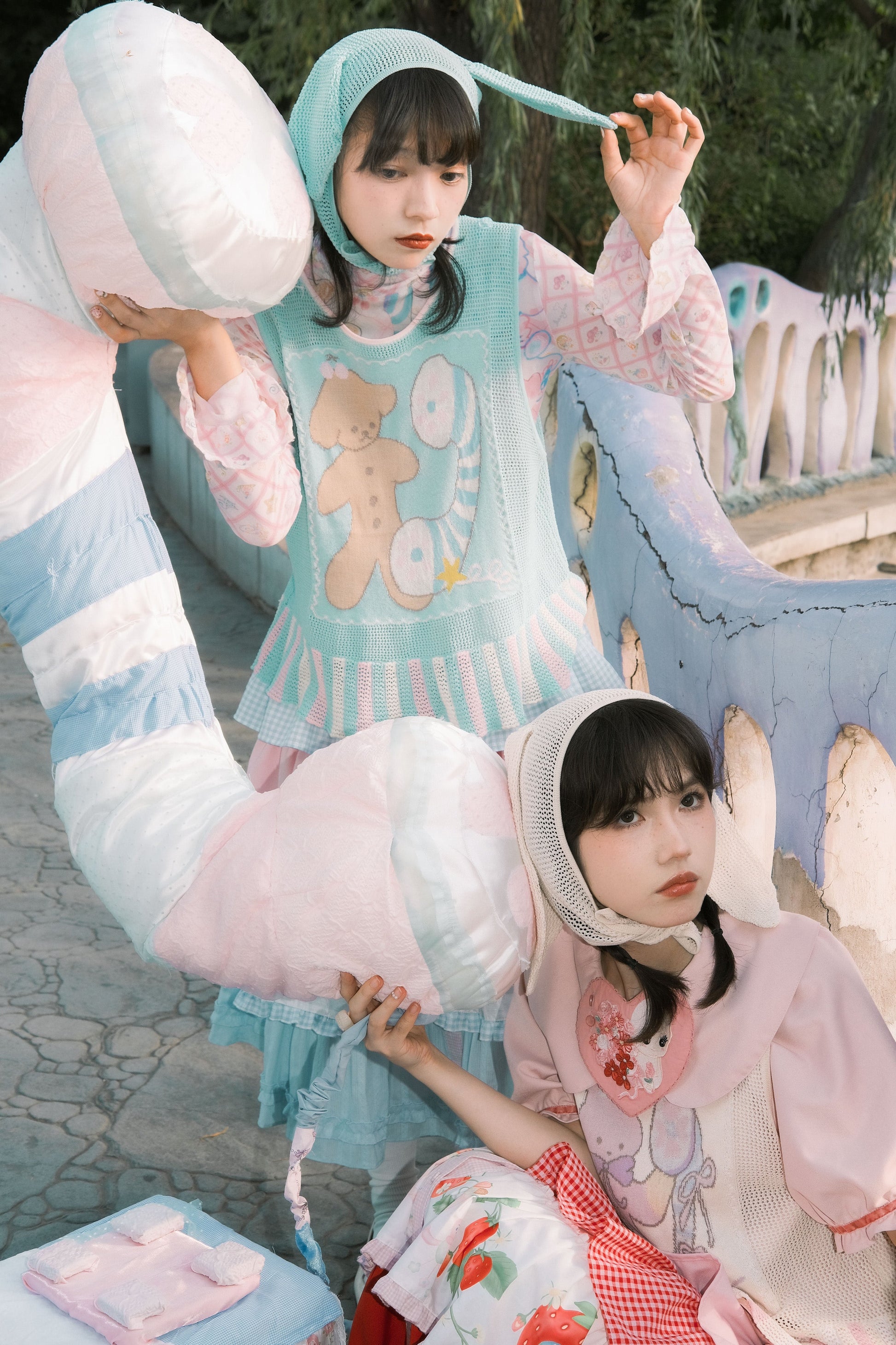 ピンクと白のオールドスクールロリータファッションドレス、蝶結びディテール、ロリータJSKセット