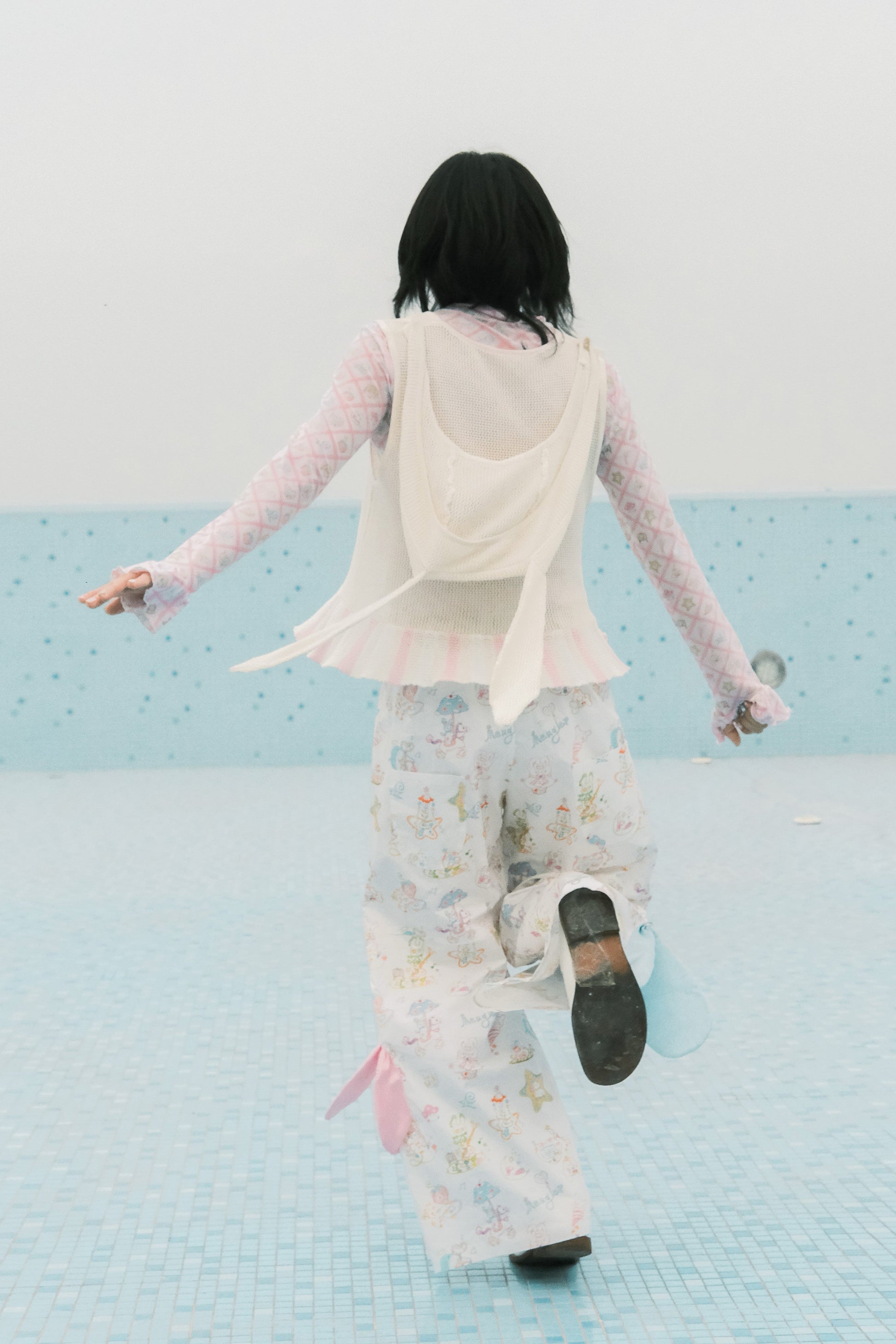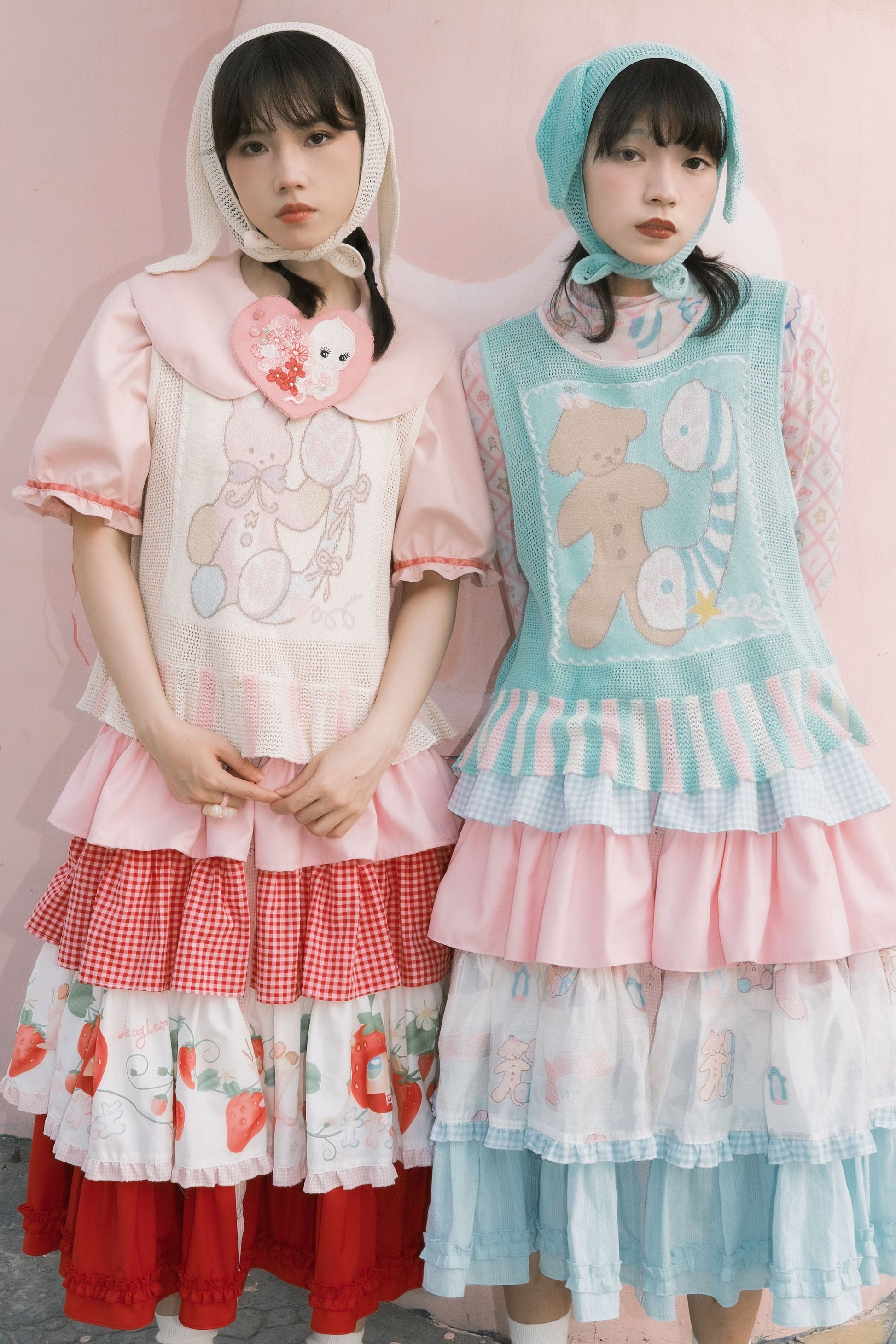 青と白のオールドスクールロリータファッションドレス 蝶結びディテール JSK セット