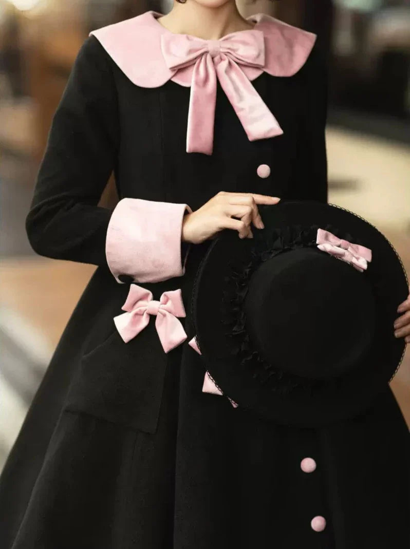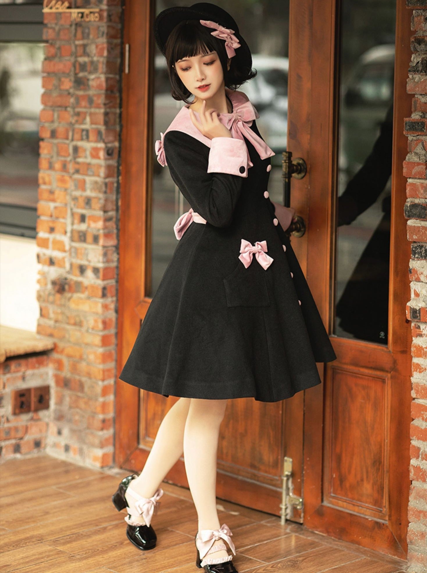 黒と白のオールドスクールロリータファッションドレス蝶結びロリータJSKセット