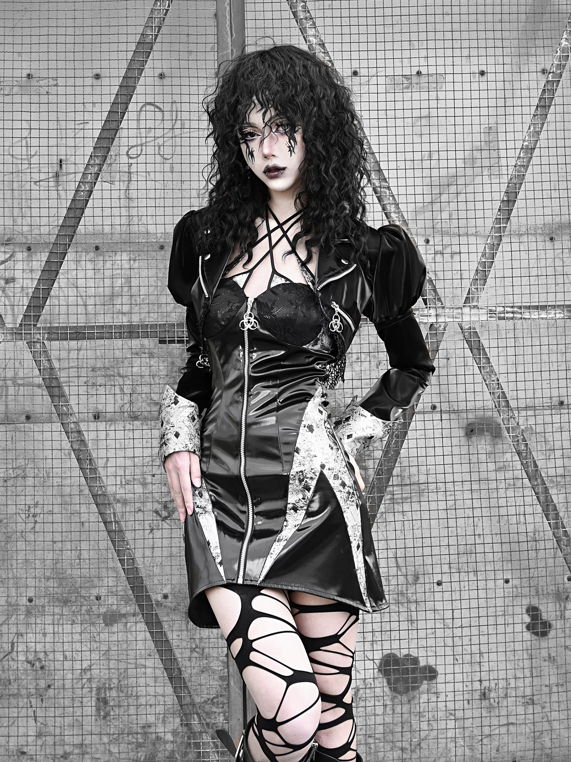 スーツホルターPUパンクスリムジップドレスサスペンダーネック
