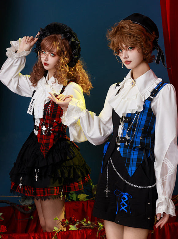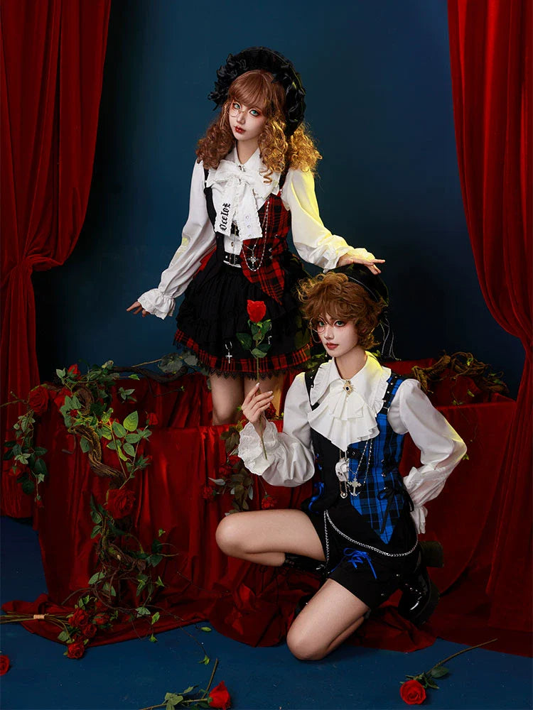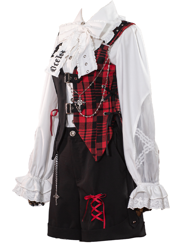 チェックのベスト、パンツ、スカート、シャツ、そしてプリンスらしいディテールが揃った、魅力的なスーツセット。洗練された装いを演出するのにぴったりで、可愛らしさも兼ね備えています。
