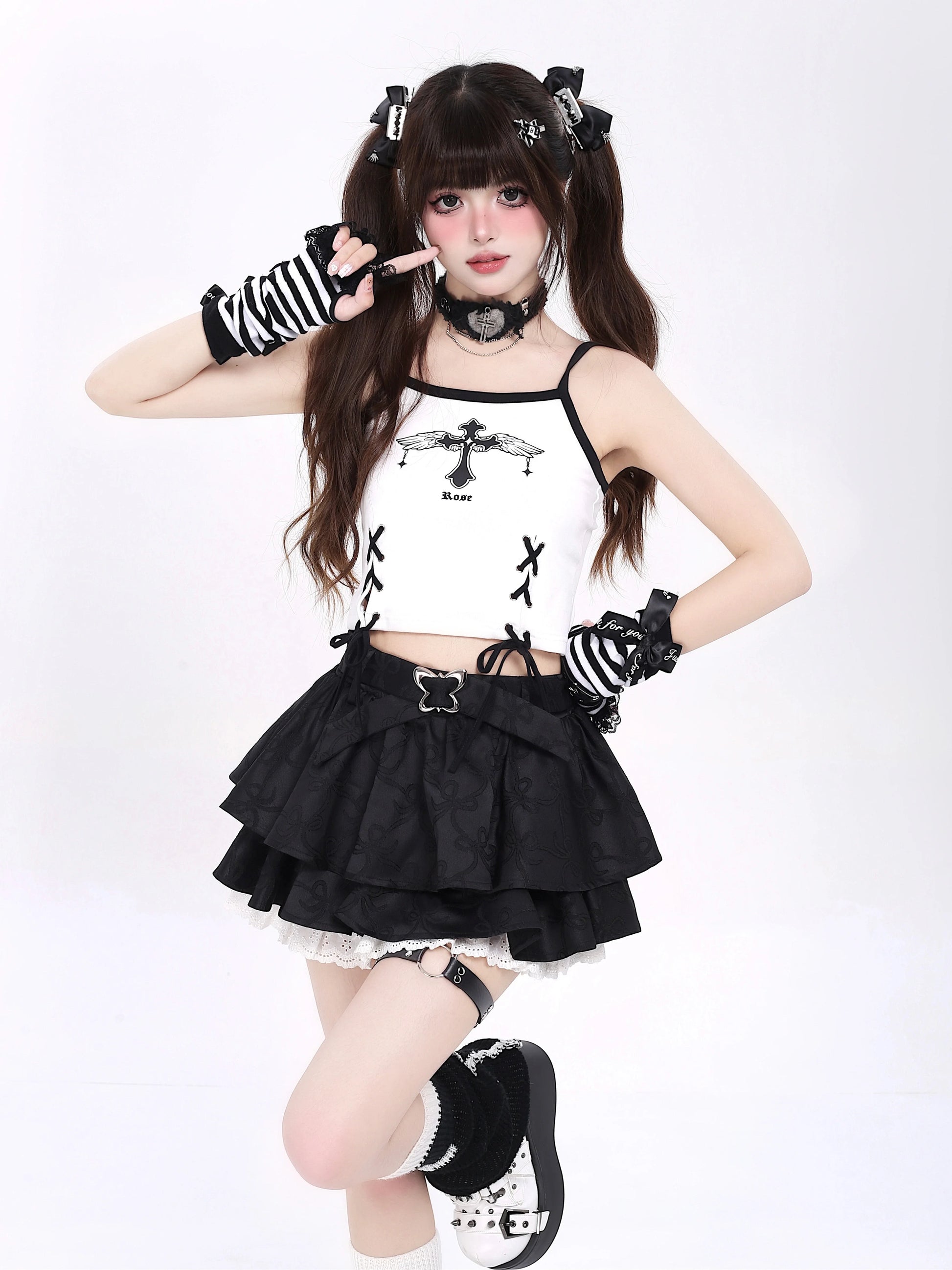 黒と白のオールドスクールロリータファッションドレス蝶結びロリータJSKセット