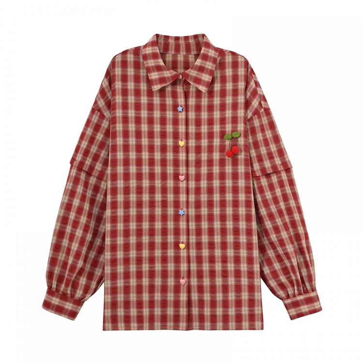 イエロー/グリーン/レッド 夏用 ゆったりチェックシャツ(袖取り外し可能)