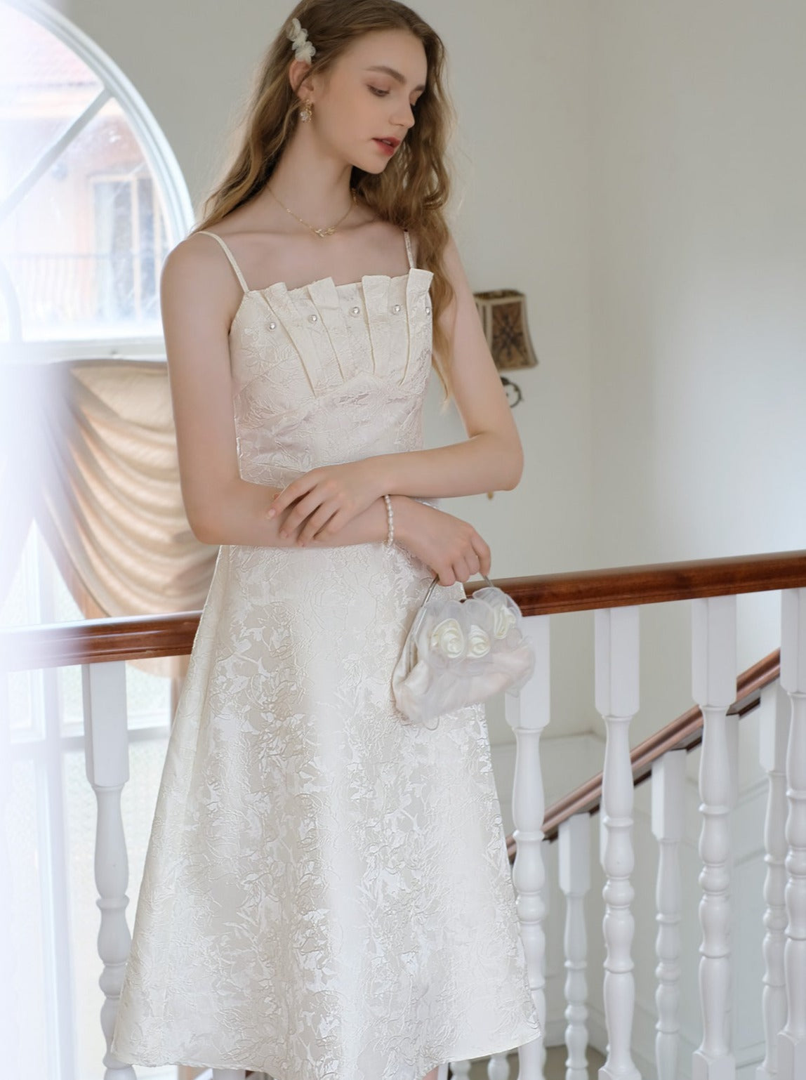 この愛らしいサスペンダービーズジャカードフレンチロングドレスは、どんなシーンにもぴったりです。ビーズのディテールがエレガントな雰囲気を添え、サスペンダーが個性的なアクセントを添えています。上質な素材を使用し、着心地も良くスタイリッシュな着心地です。人混みの中でも存在感を発揮し、自信に満ちた装いを演出するのに最適です。
