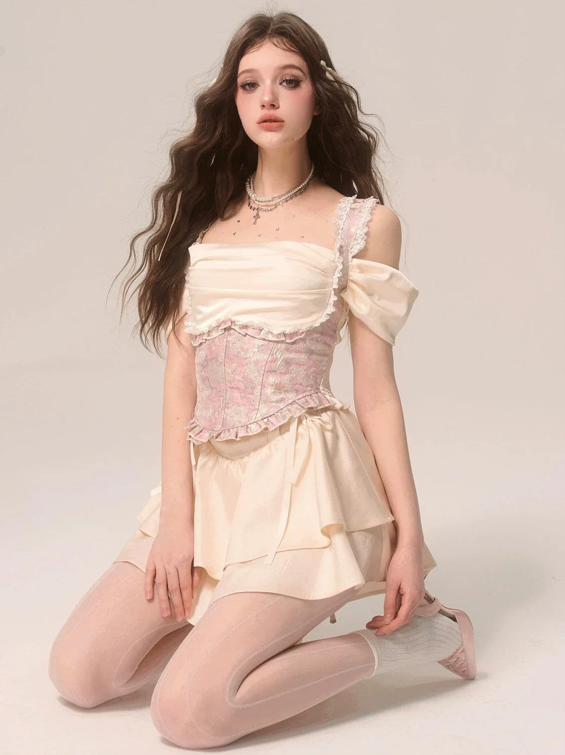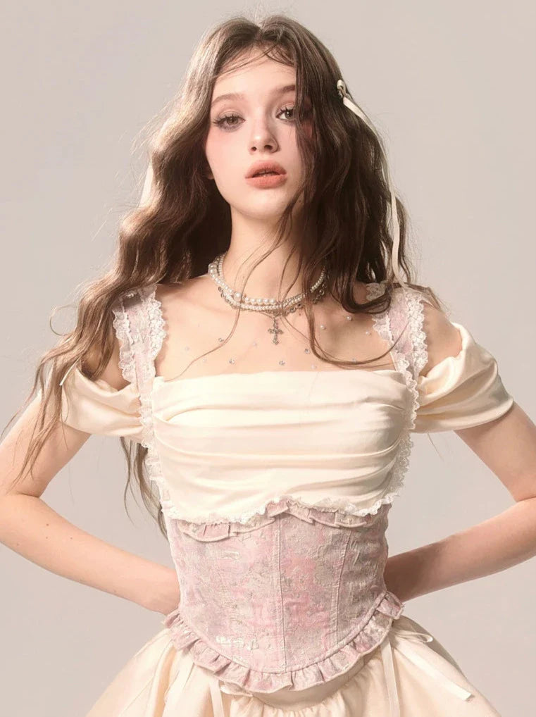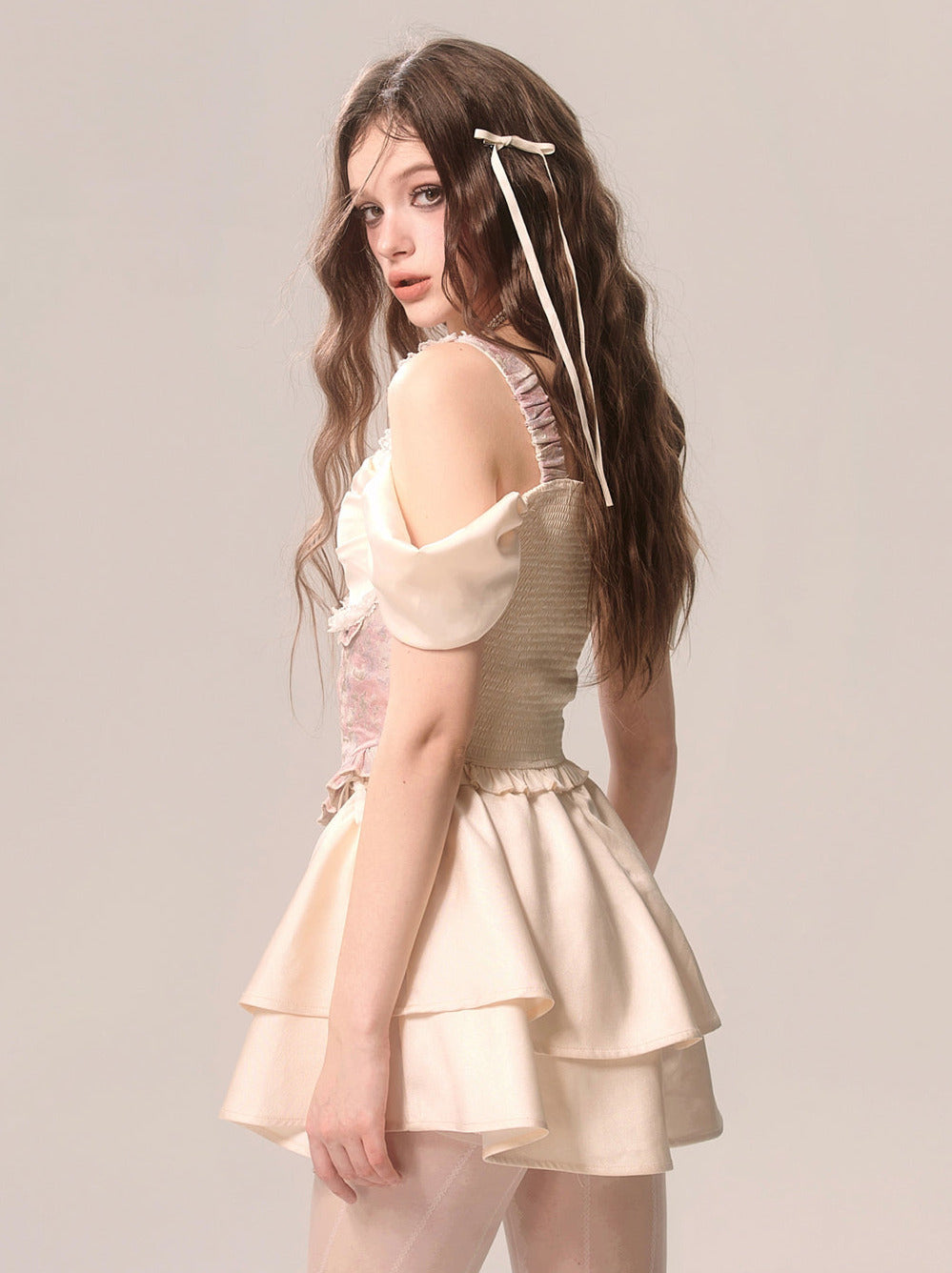 サスペンダースカート ニッチケーキ ロマンティックレーストップ フレンチ