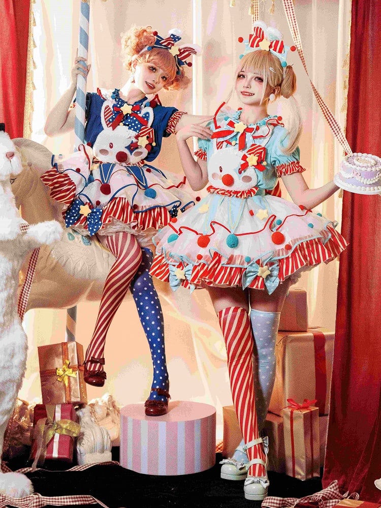 青と白のオールドスクールロリータファッションドレス 蝶結びディテール JSK セット