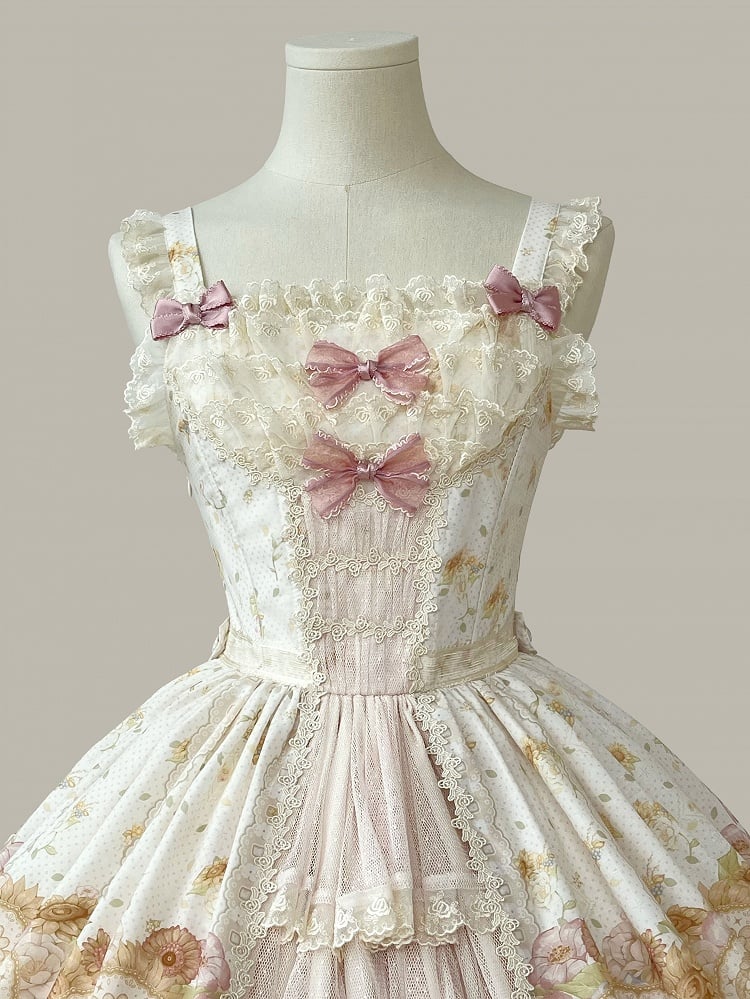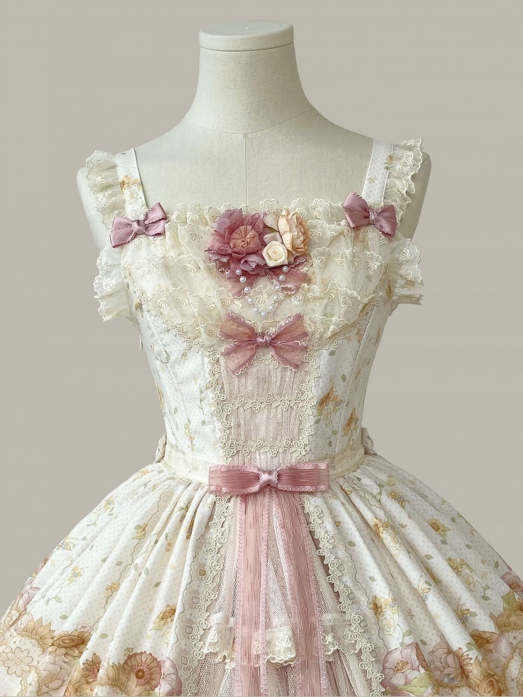 ピンクと白のオールドスクールロリータファッションドレス、蝶結びディテール、ロリータJSKセット