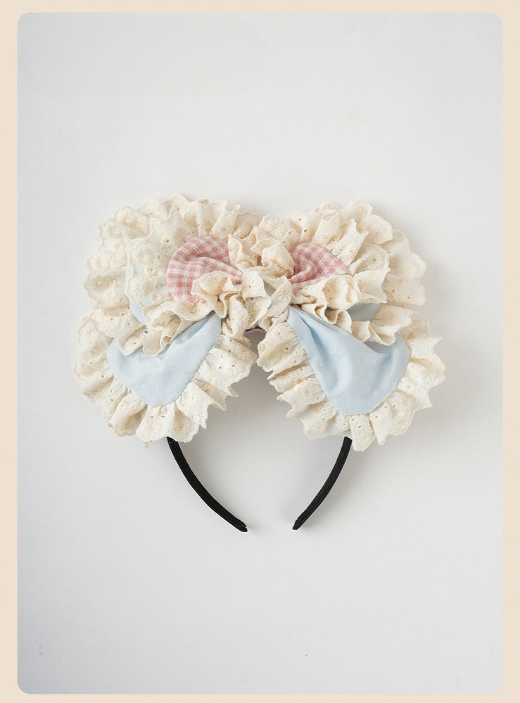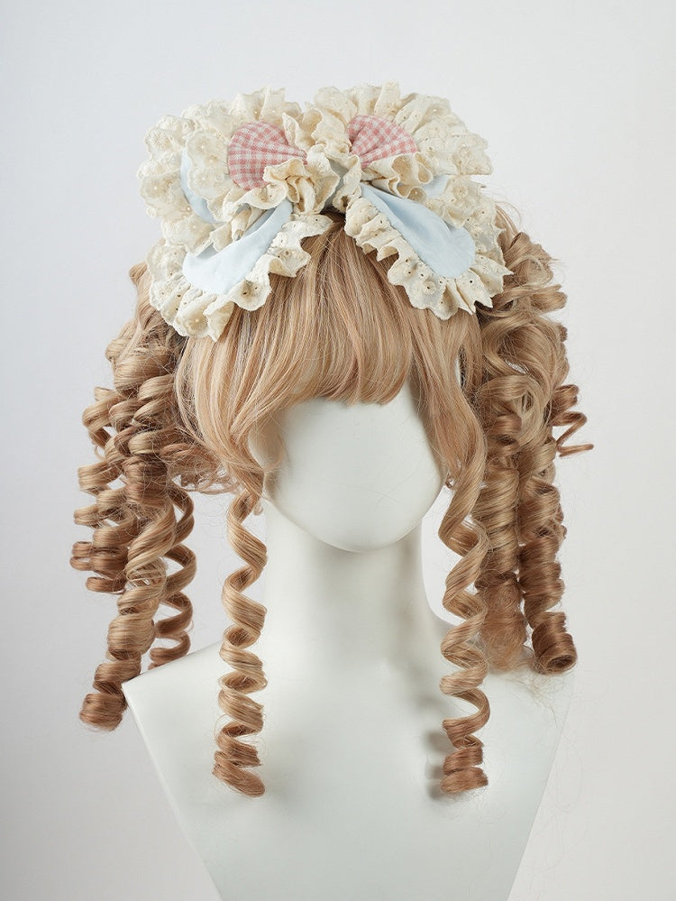 スイートロリータのブルー&ピンクのビッグリボンフリルレーストリムKCで、ワードローブに甘さをプラス。繊細なフリルレーストリムと大きなリボンが特徴のこのアクセサリーは、どんな装いにもキュートでチャーミングな雰囲気を添えてくれます。