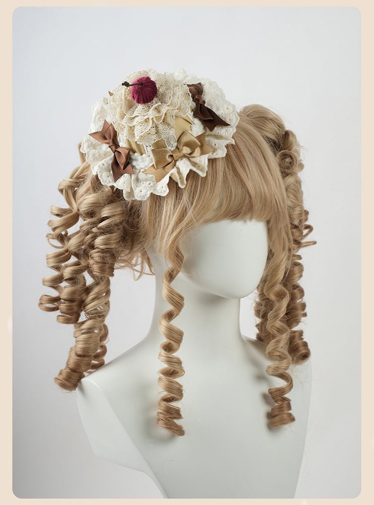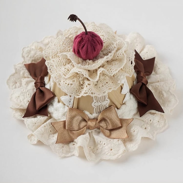 スイートロリータコーヒーボウチェリーケーキレイヤードレーストリムミニハット