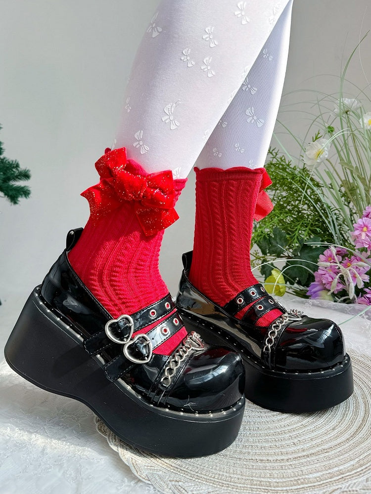 この愛らしい赤いアンクルソックスは、どんなスイートロリータファッションにもぴったり。ニットデザインが暖かさと快適さをプラスし、キュートなリボンのディテールがキュートな印象をプラス。この魅力的なソックスで、カワイイコーデを完成させましょう。