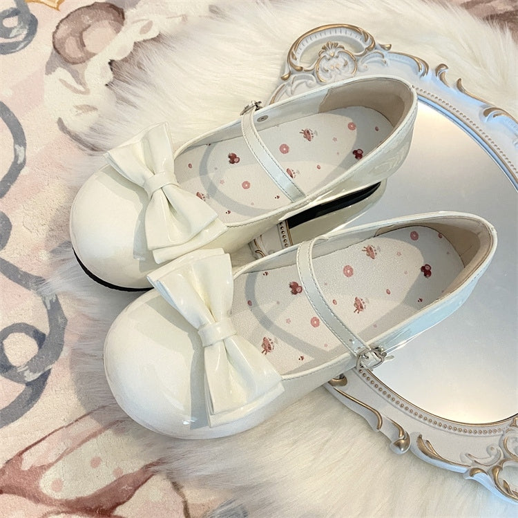 Sweet Off-white Round Low with Janes Lolita Heart Buckle Toe - for Bow Detachable Heel Mary