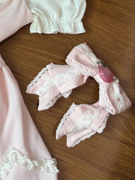 ピンクと白のオールドスクールロリータファッションドレス、蝶結びディテール、ロリータJSKセット