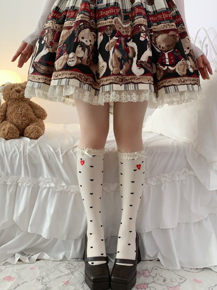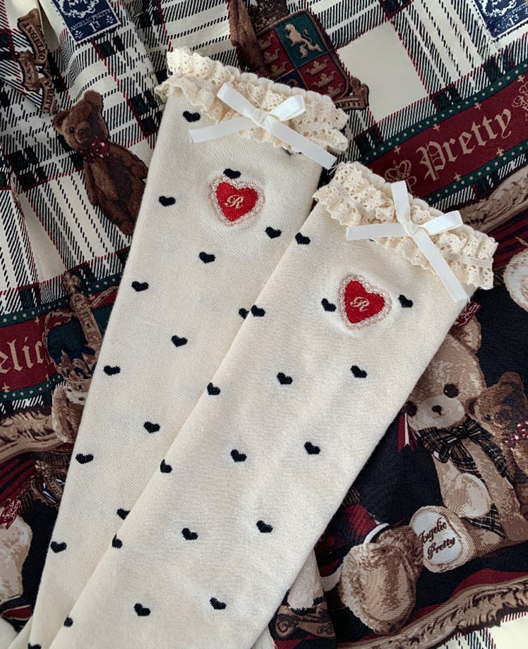 キュートなスイートハート柄のロリータカーフソックスで、装いに甘さをプラス。愛らしいスイートハート柄が特徴のキュートなソックスは、ロリータファッション好きの方にぴったりです。この愛らしいカーフソックスで、一日中スタイリッシュで快適な装いを。