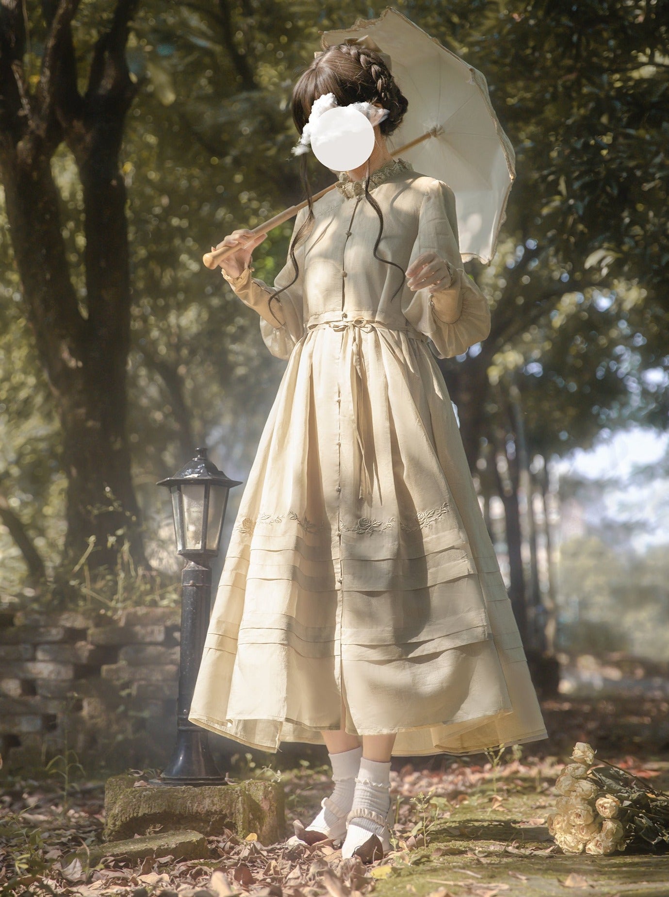 青と白のオールドスクールロリータファッションドレス 蝶結びディテール JSK セット