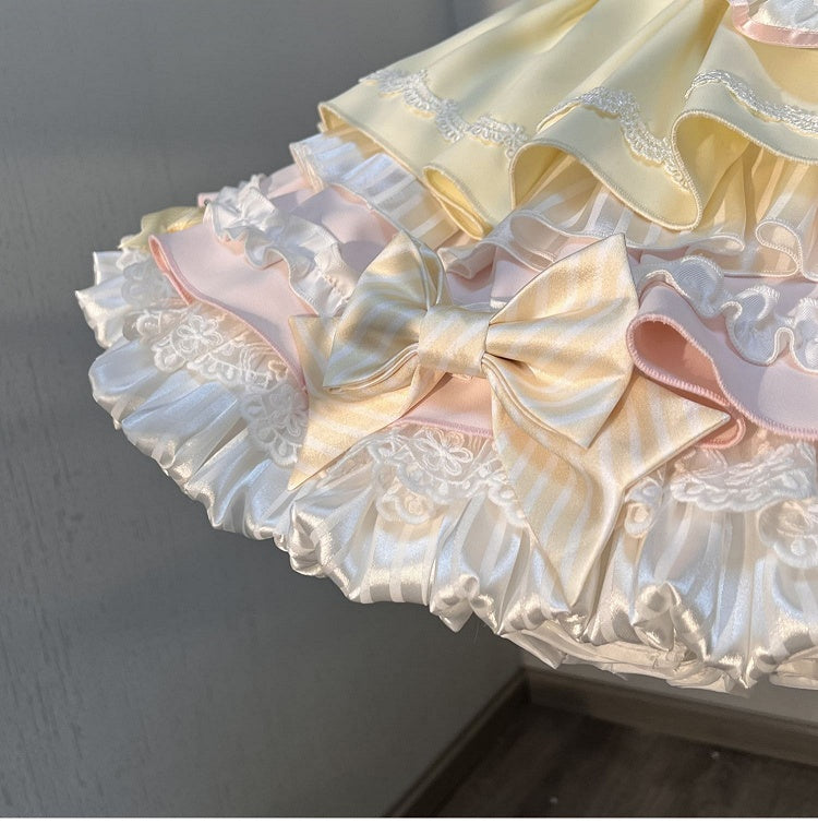黄色とピンクのスイートバニーテーマメイドロリータパフスリーブドレス