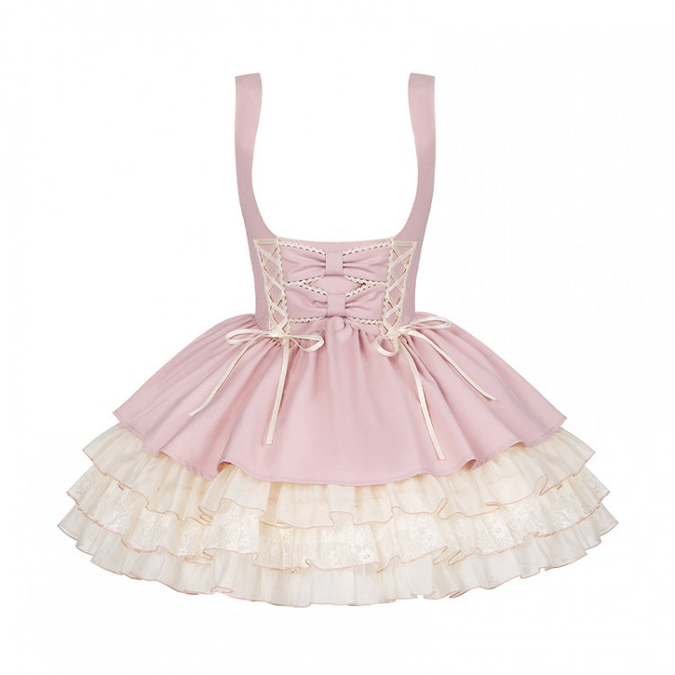 3つのフリル付きロリータジャンパー裾スカートピンクバストレイヤー