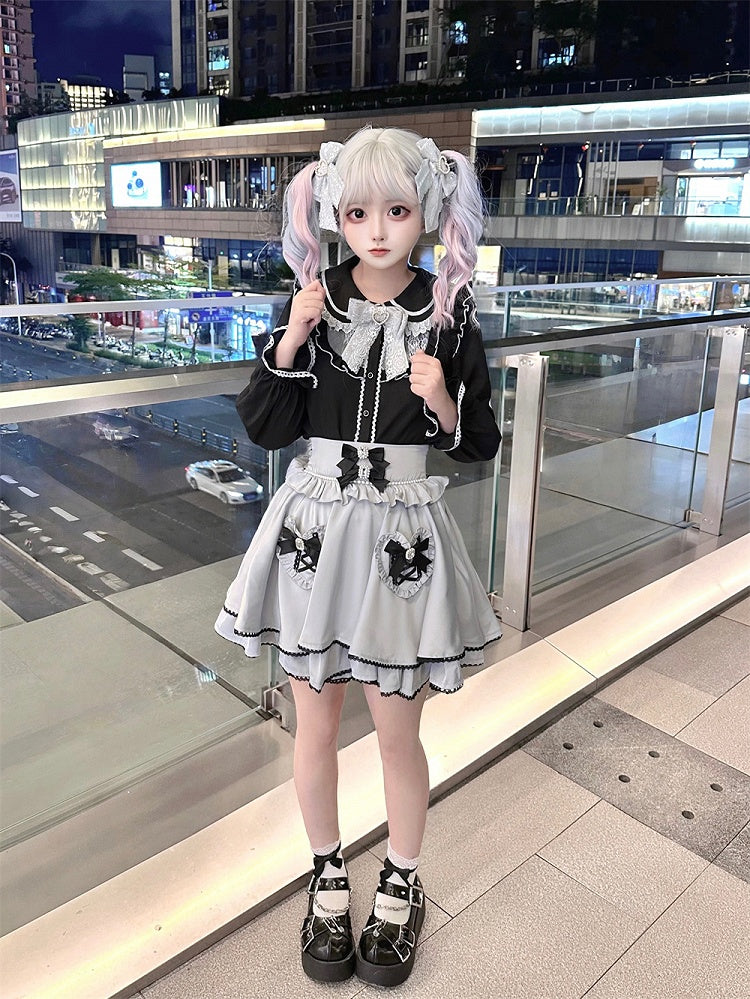 Tie Jirai Kei Black Peter Pan Collar Long Sleeve Blouse Free with Bow