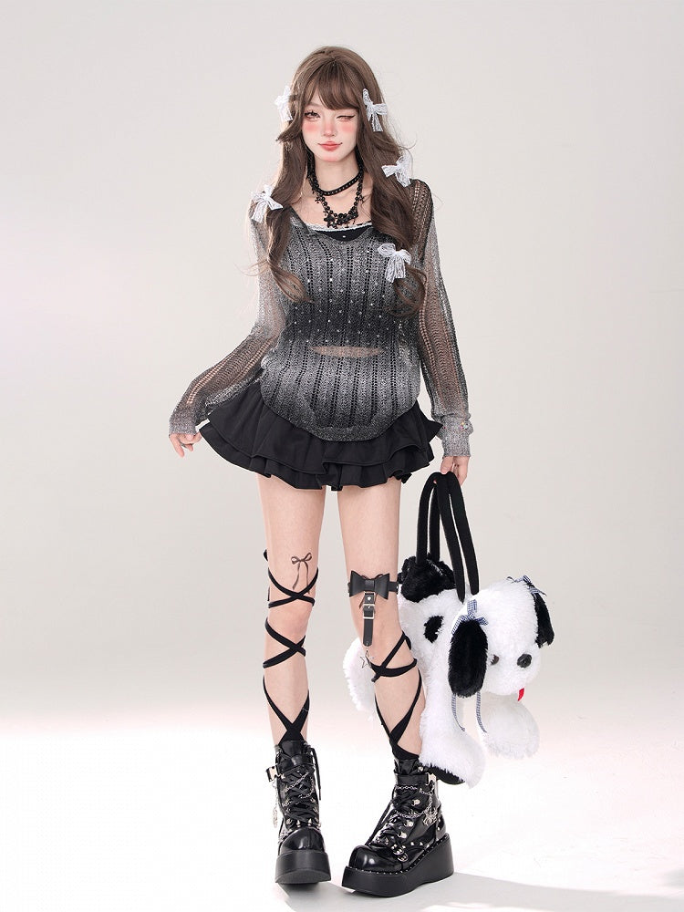 ティアードミニスカート ブラック Aライン グラマラス