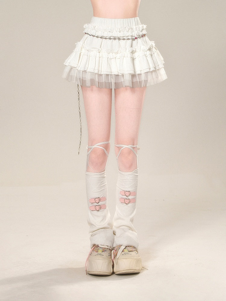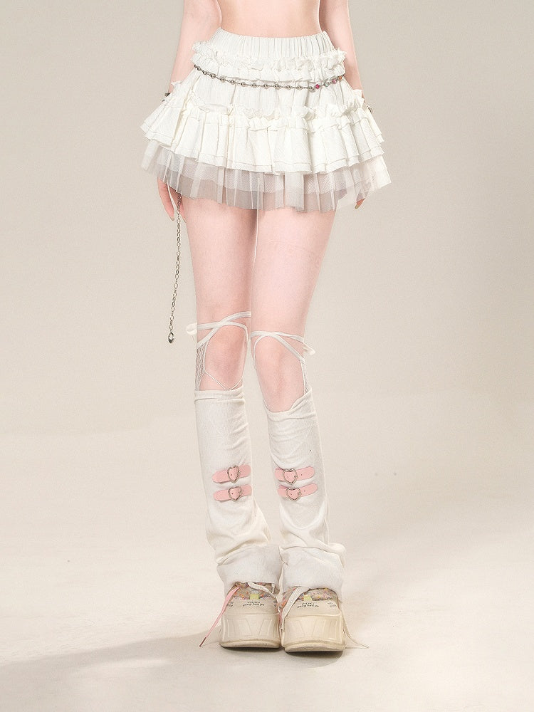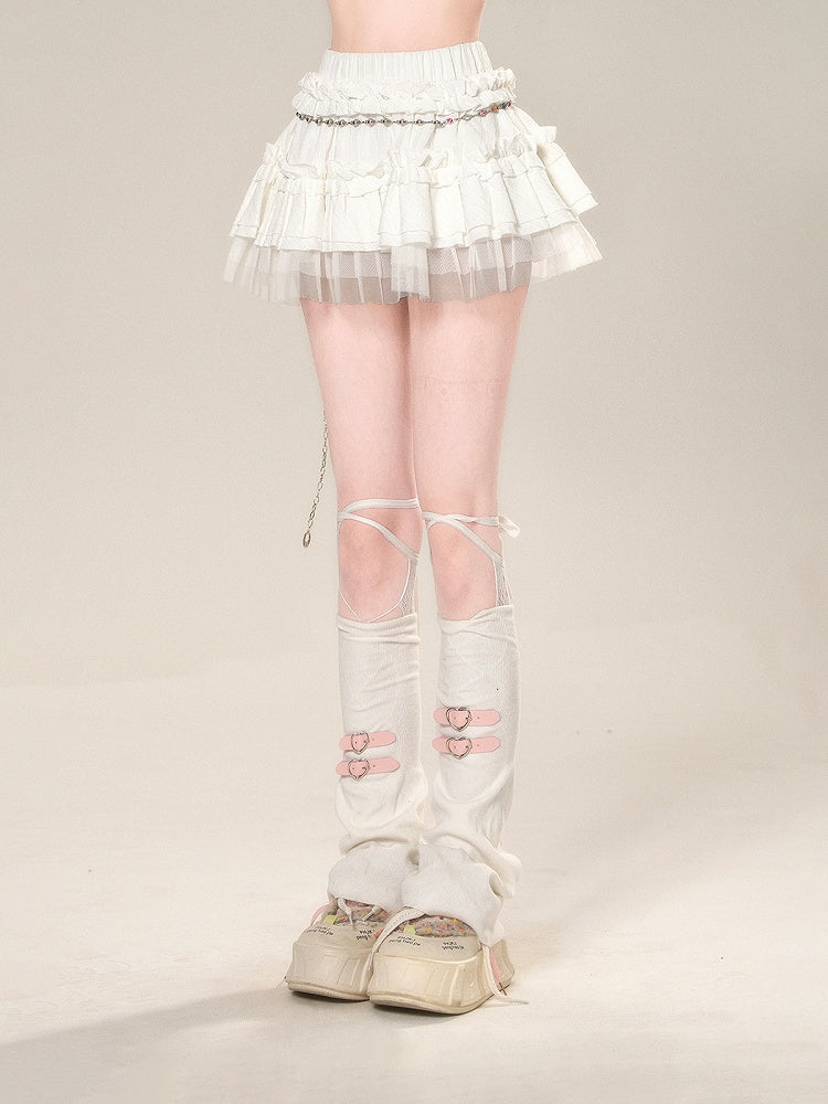 ティアードスカート ホワイト メッシュ 伸縮性ウエスト スイート