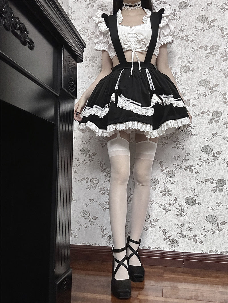 黒と白のオールドスクールロリータファッションドレス蝶結びロリータJSKセット