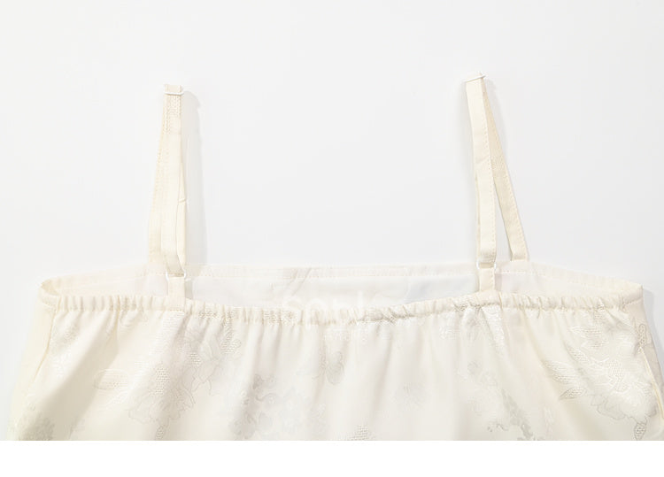 花と鳥の刺繍が美しいアプリコットキャミソールトップ