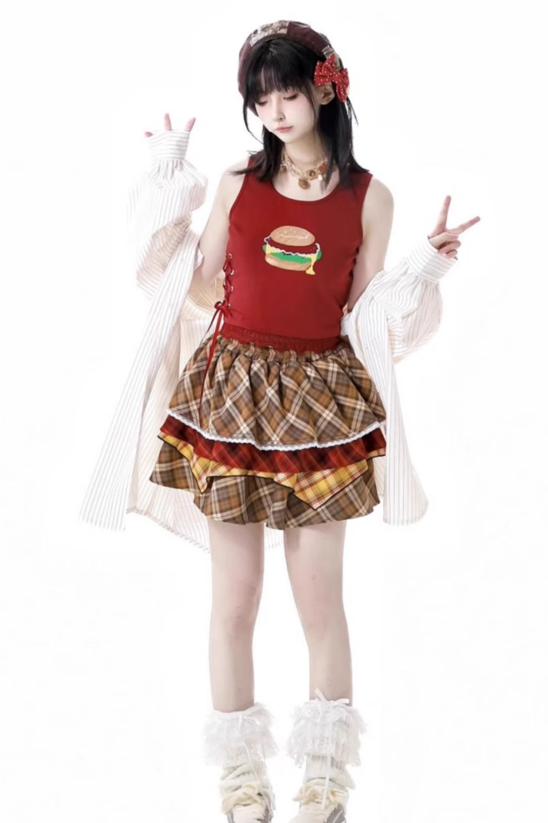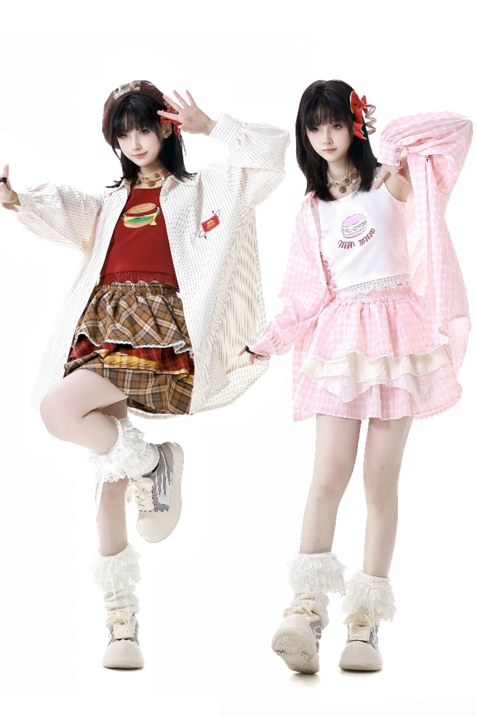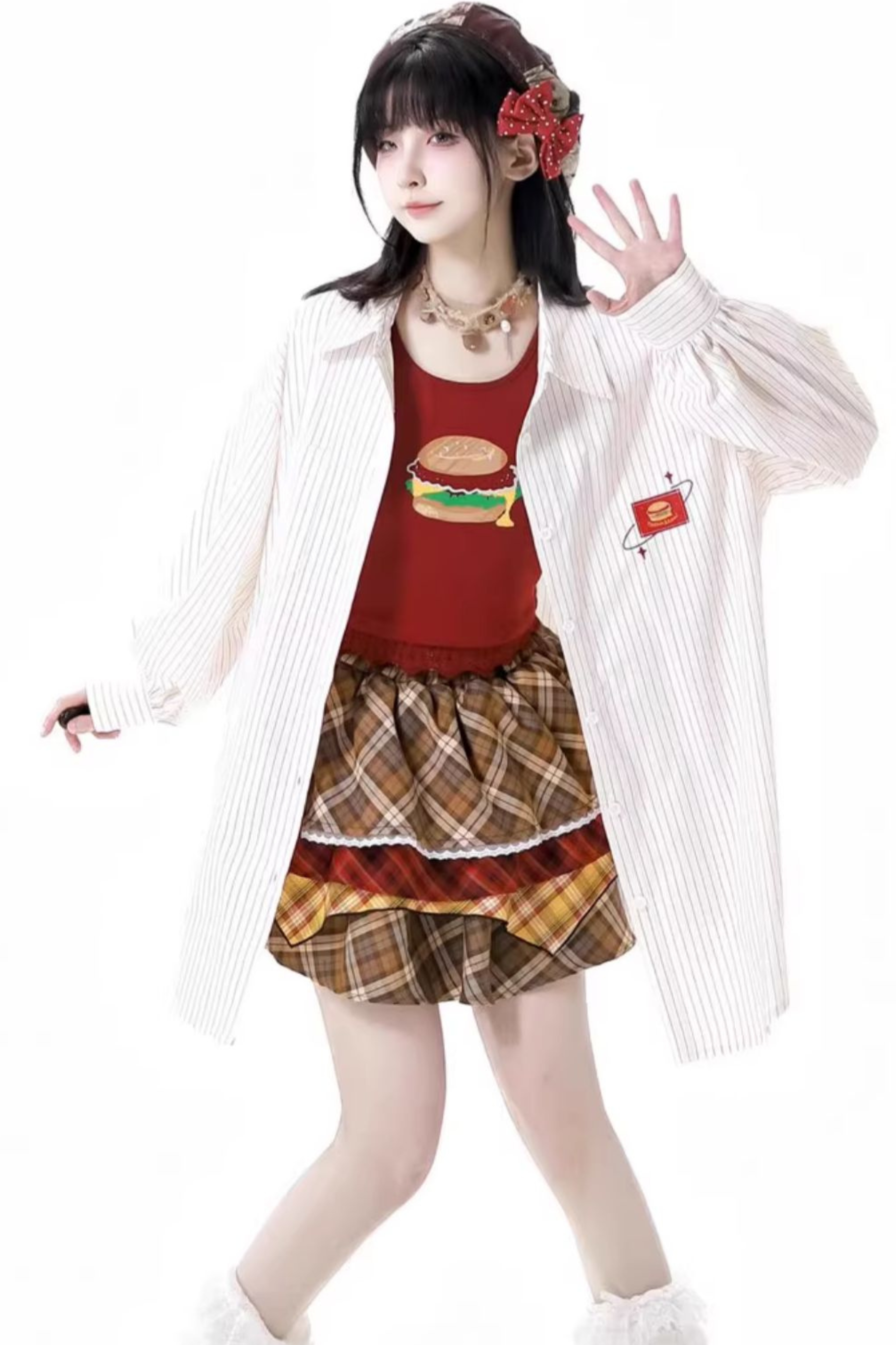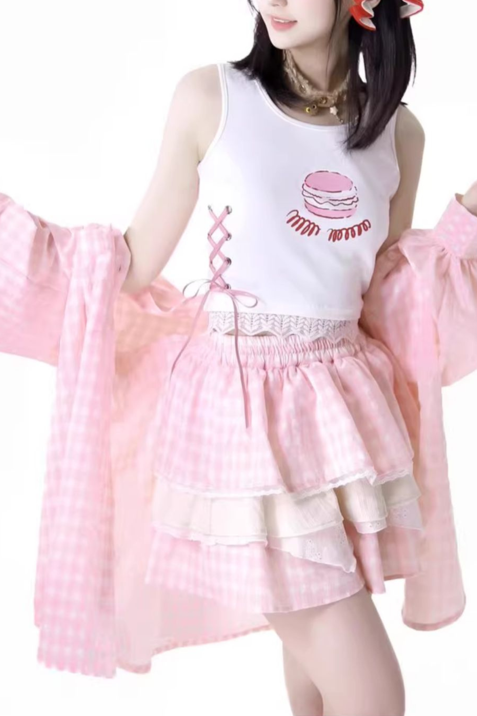 ❤オーバーシャツ + ノースリーブトップス + ケーキスカート❤