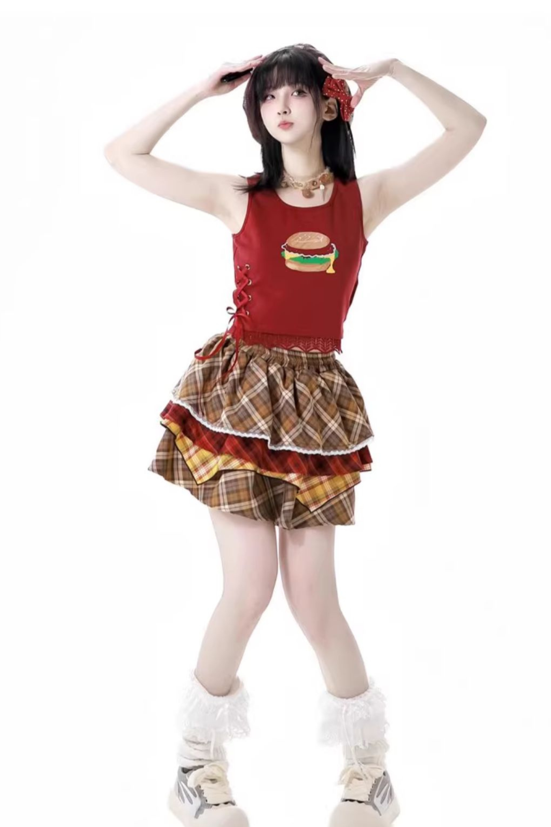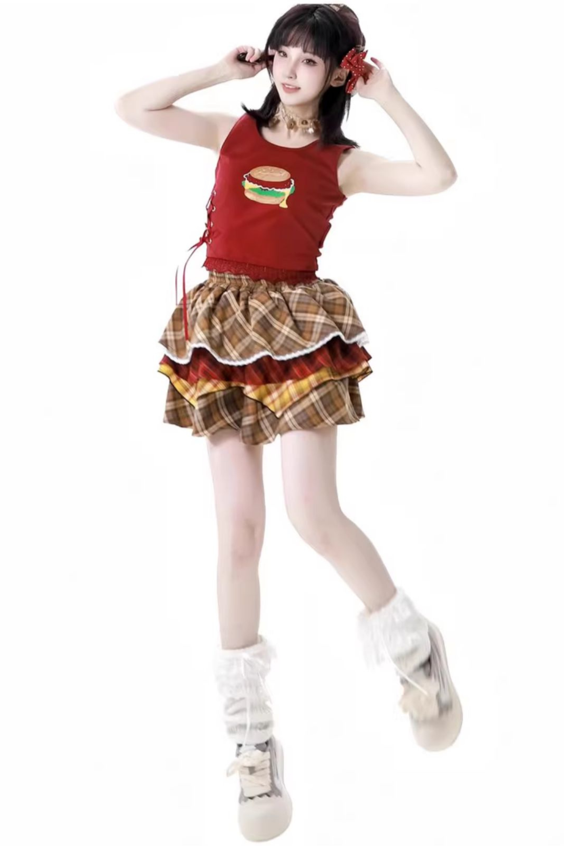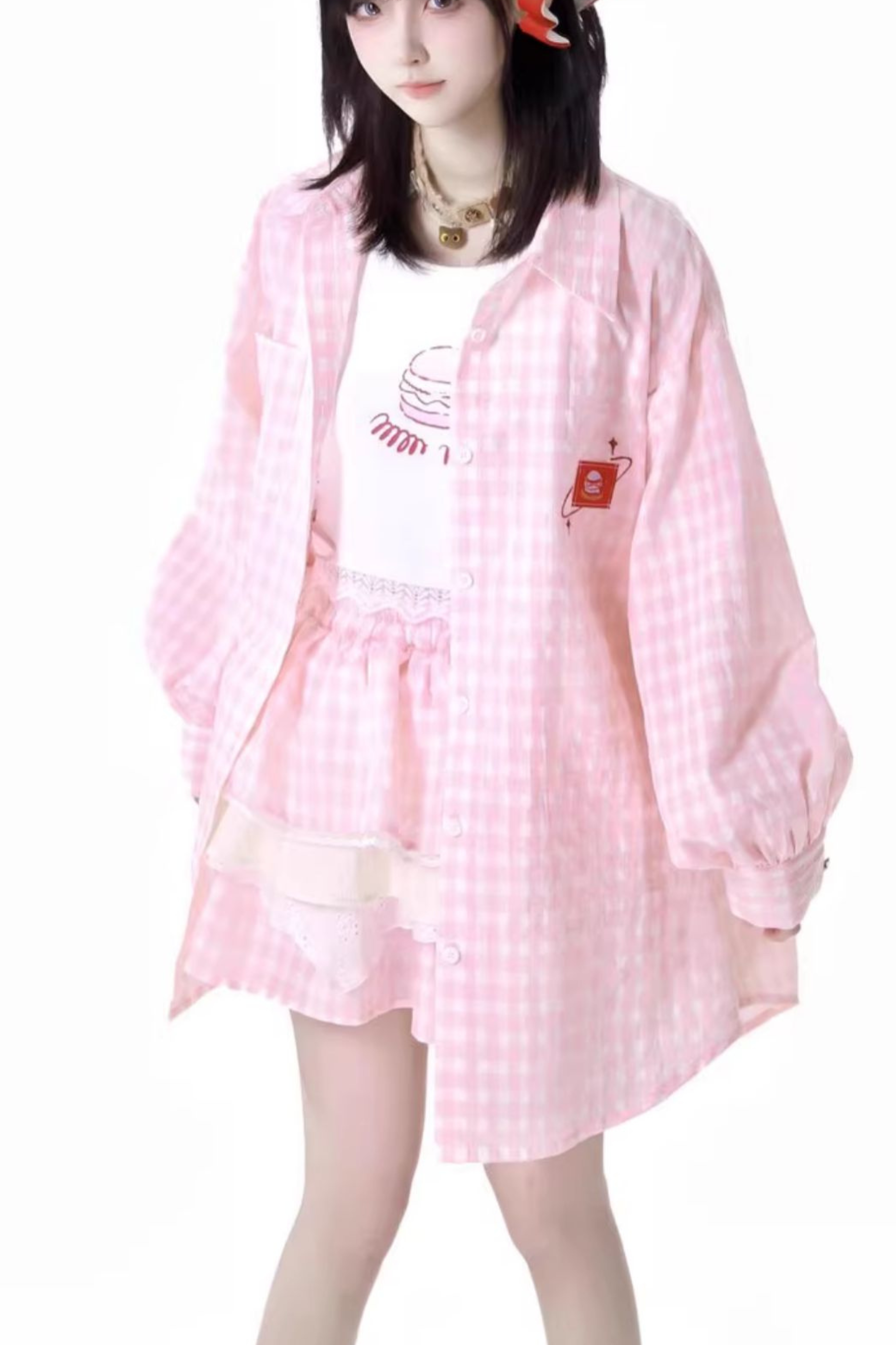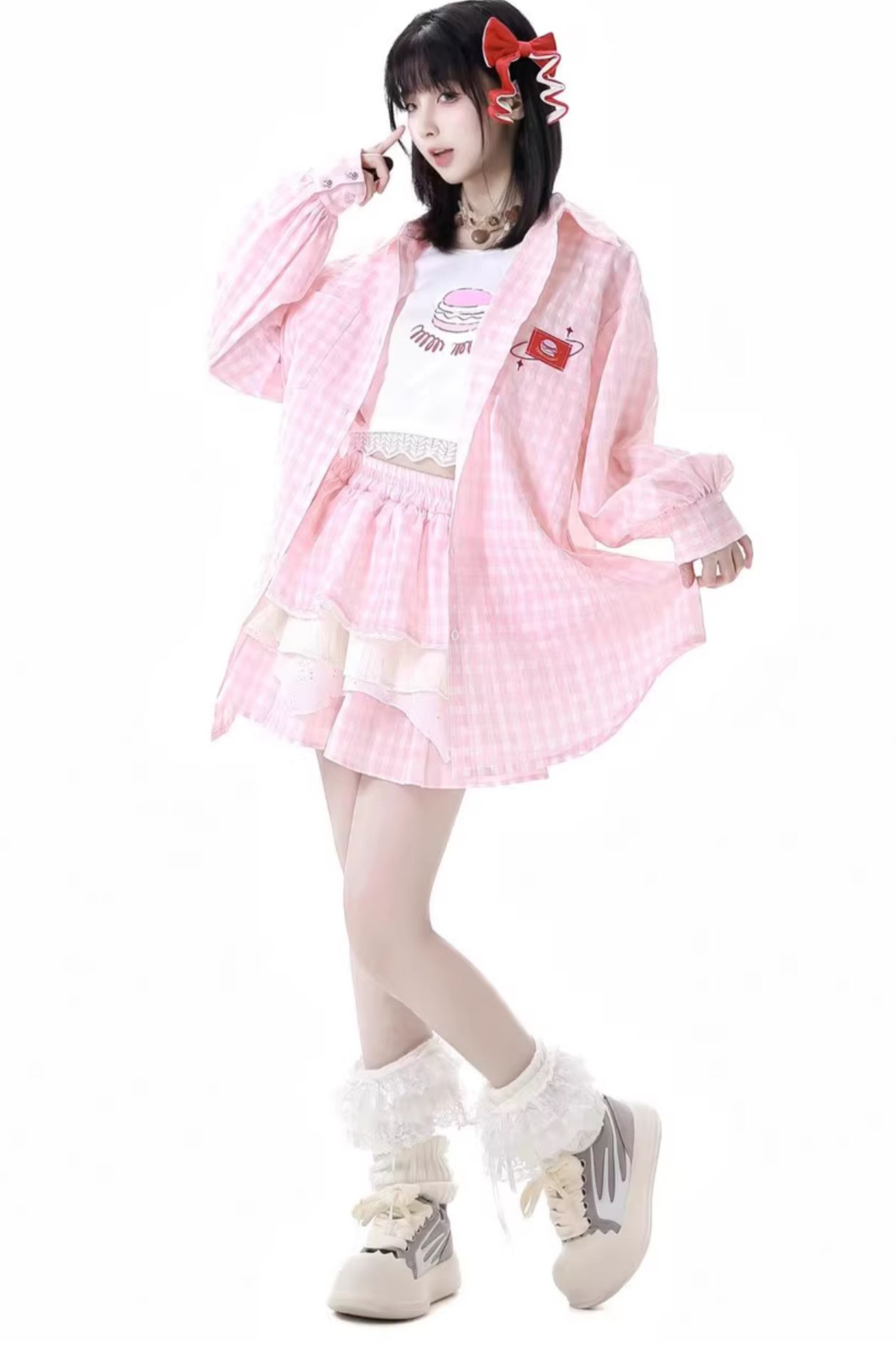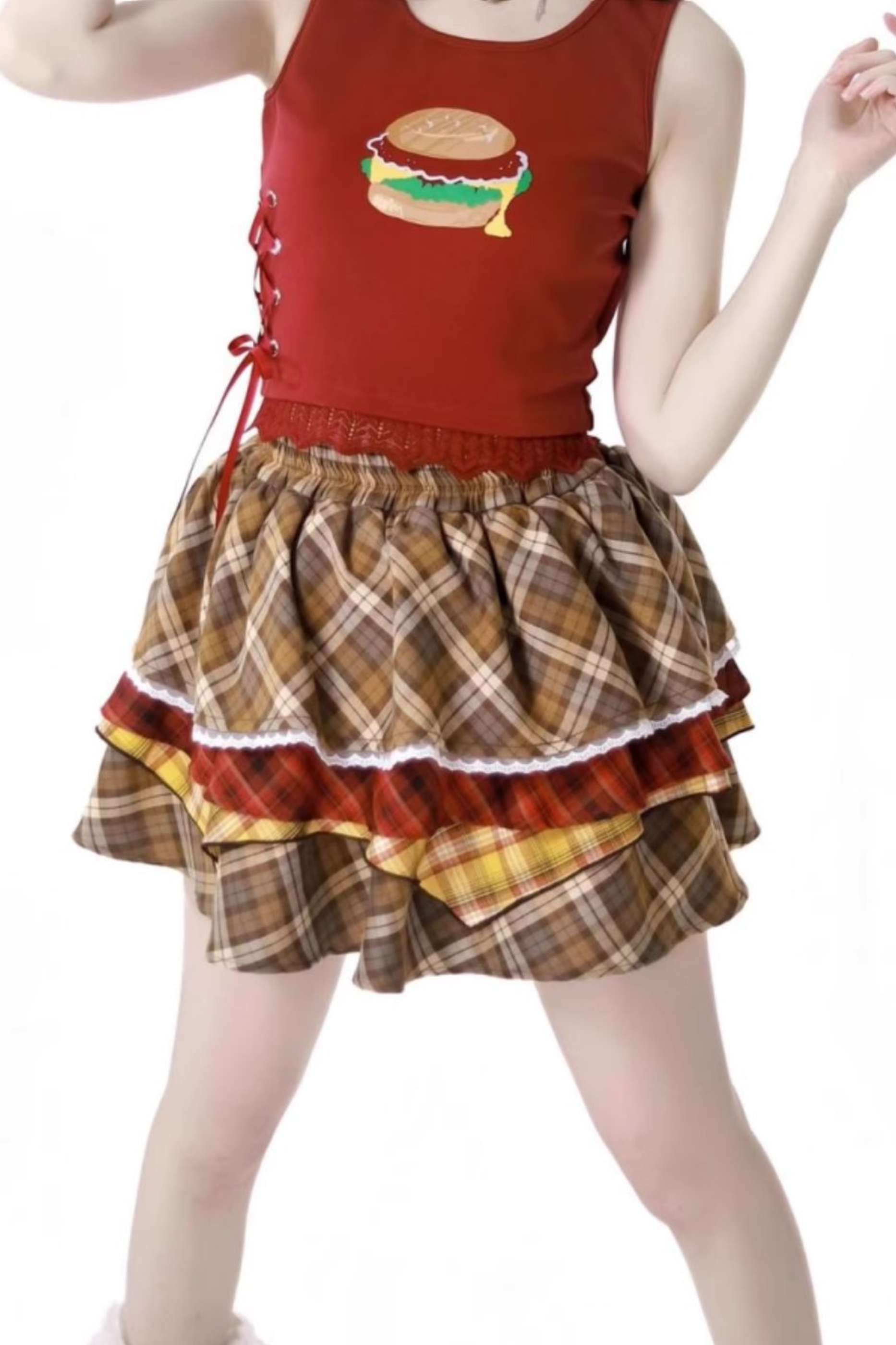 ❤オーバーシャツ + ノースリーブトップス + ケーキスカート❤