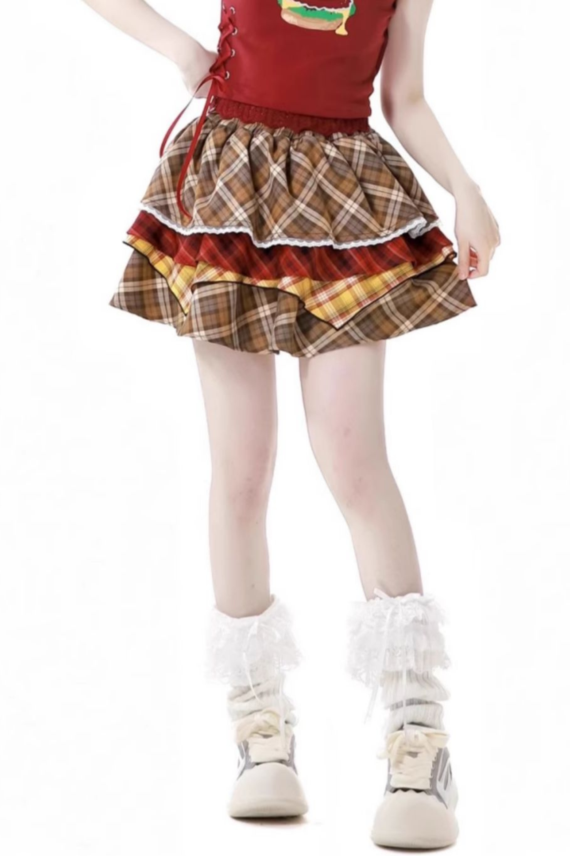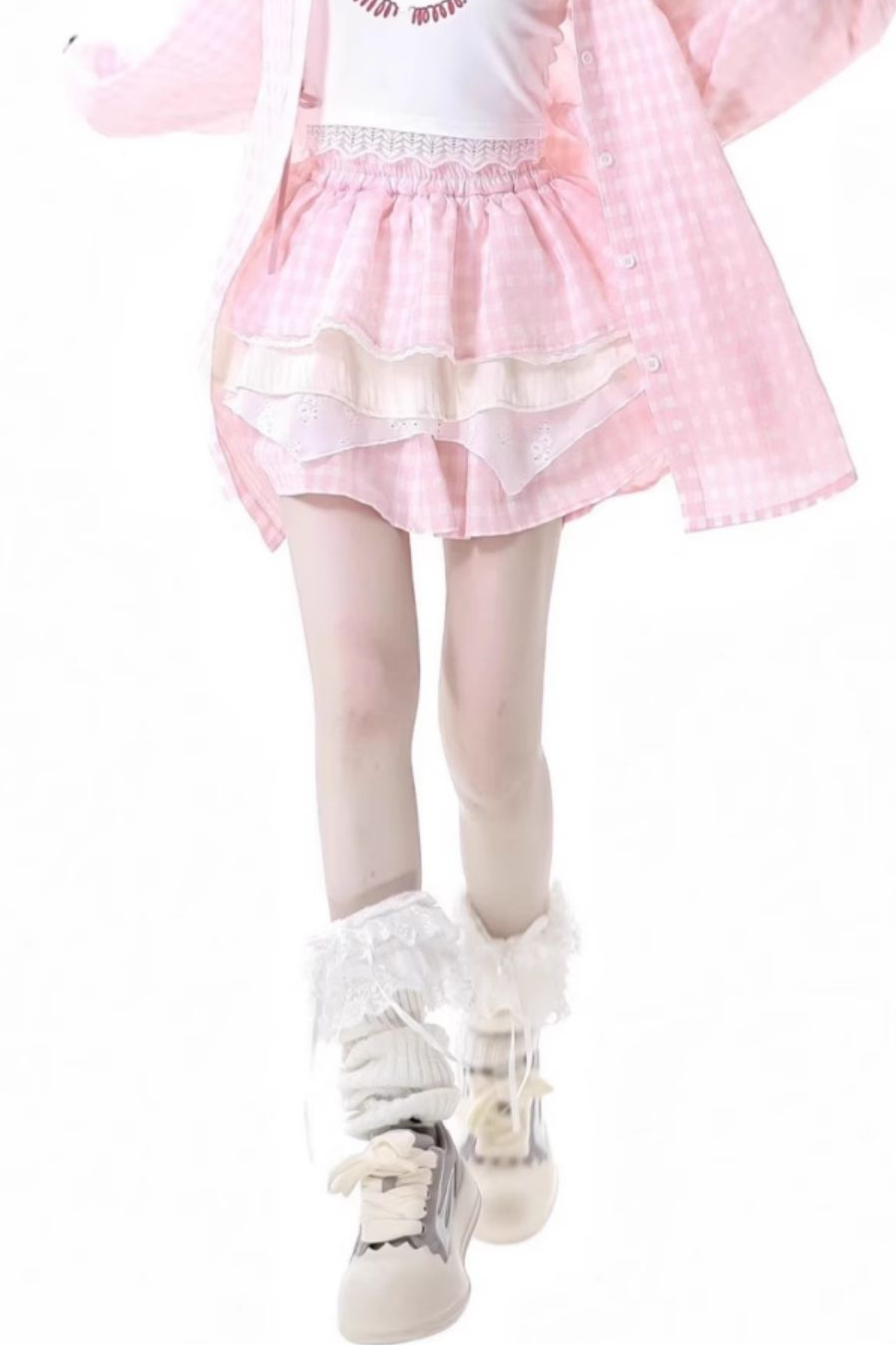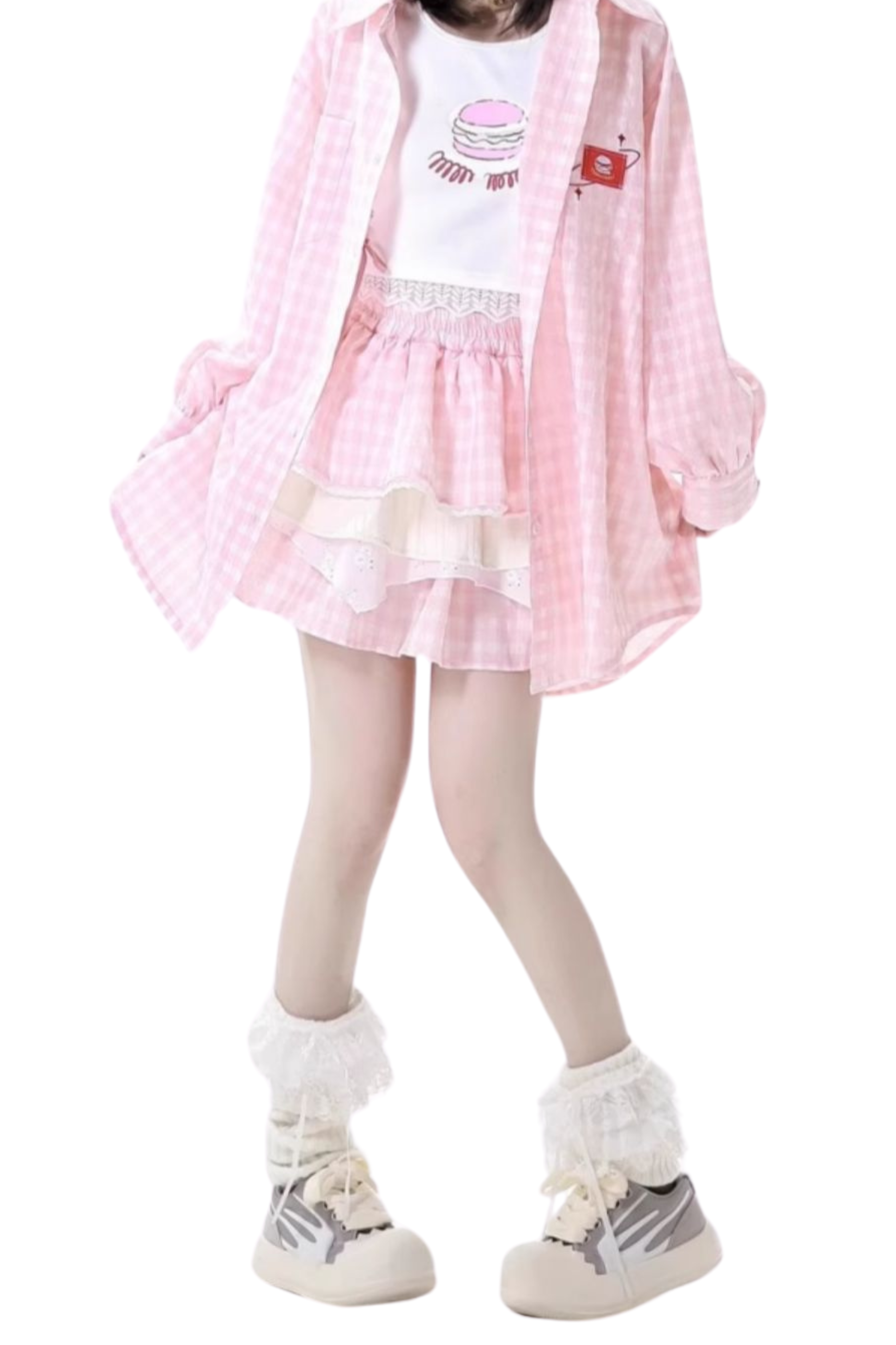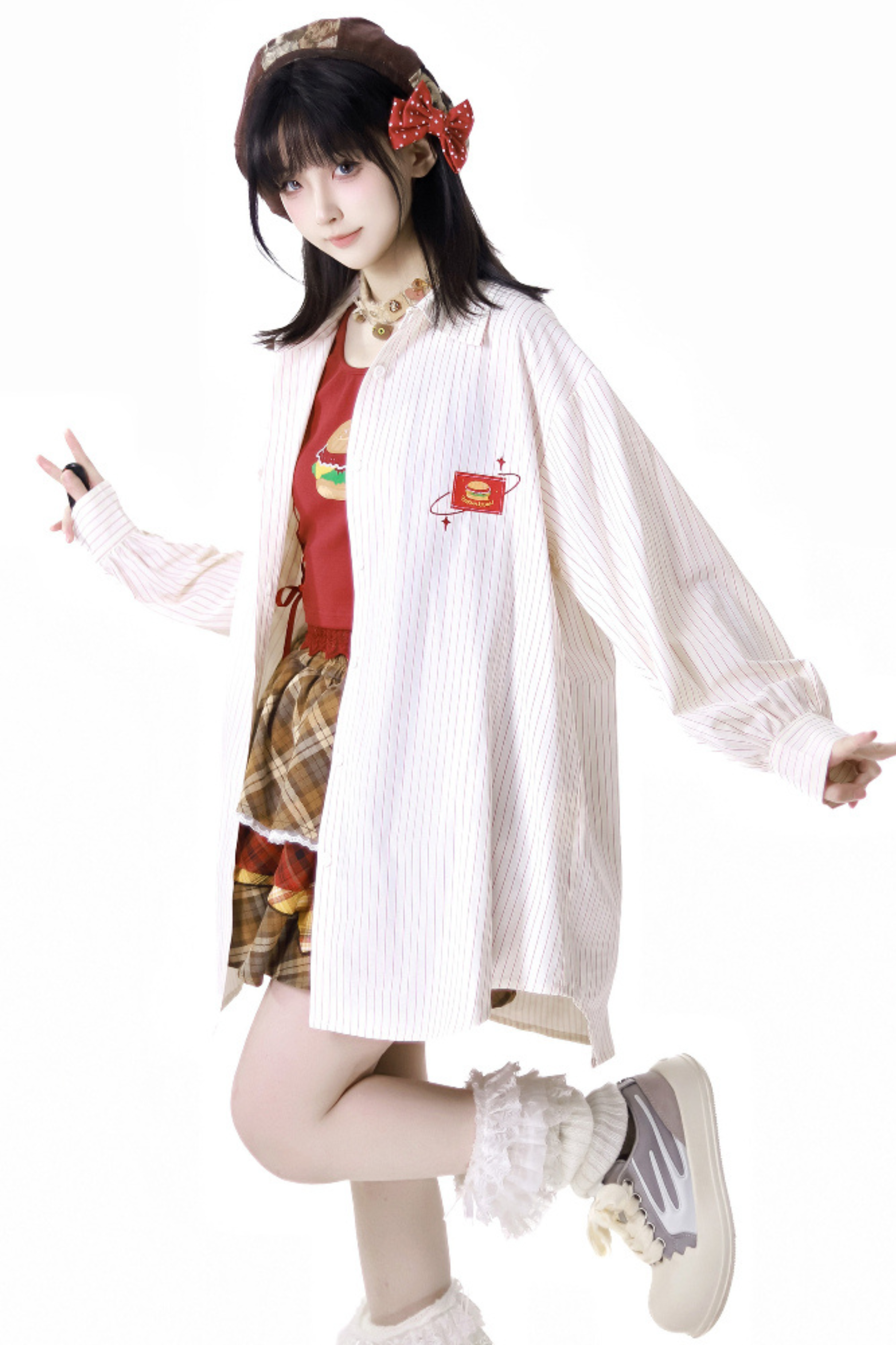 ❤オーバーシャツ + ノースリーブトップス + ケーキスカート❤