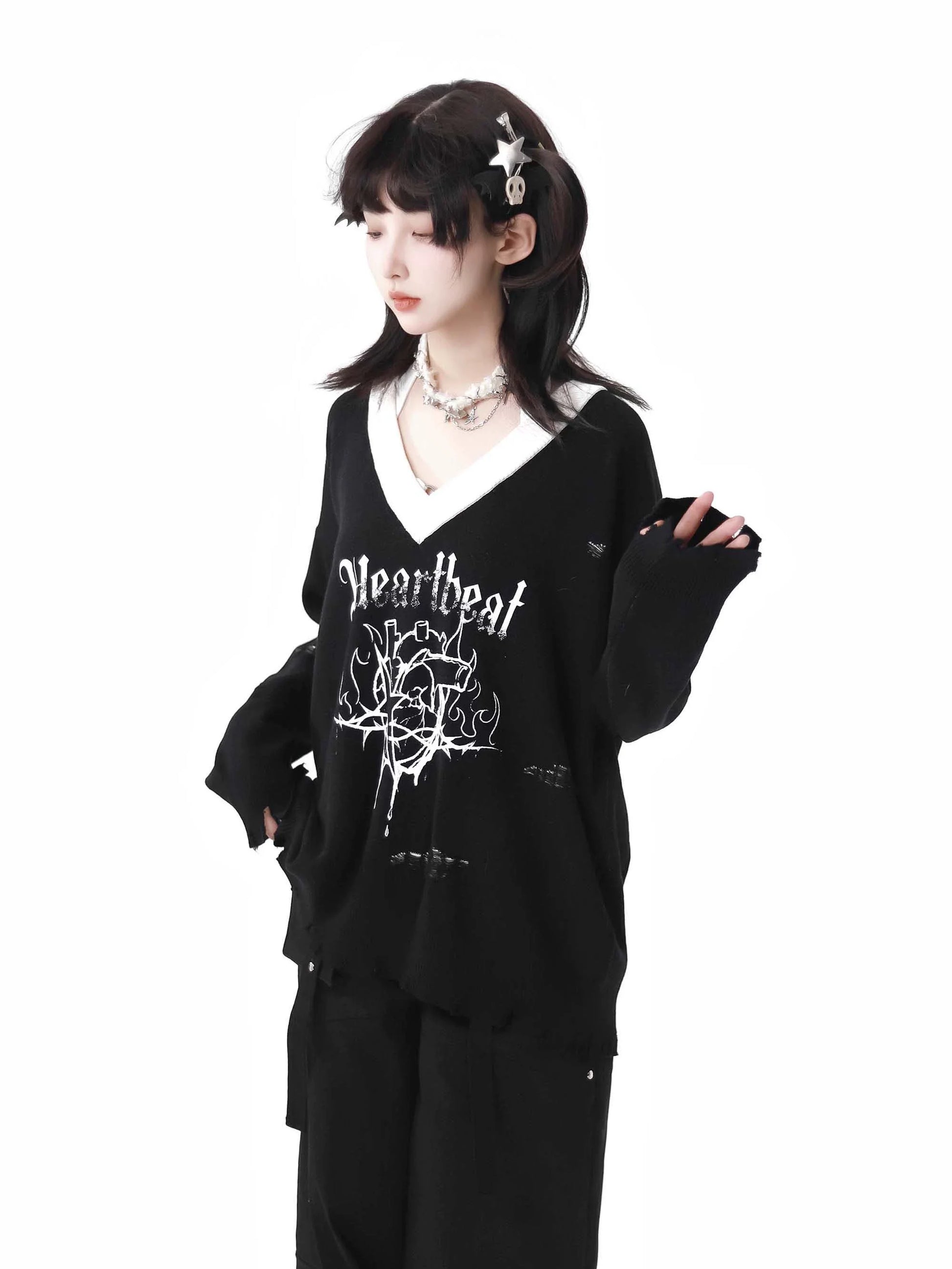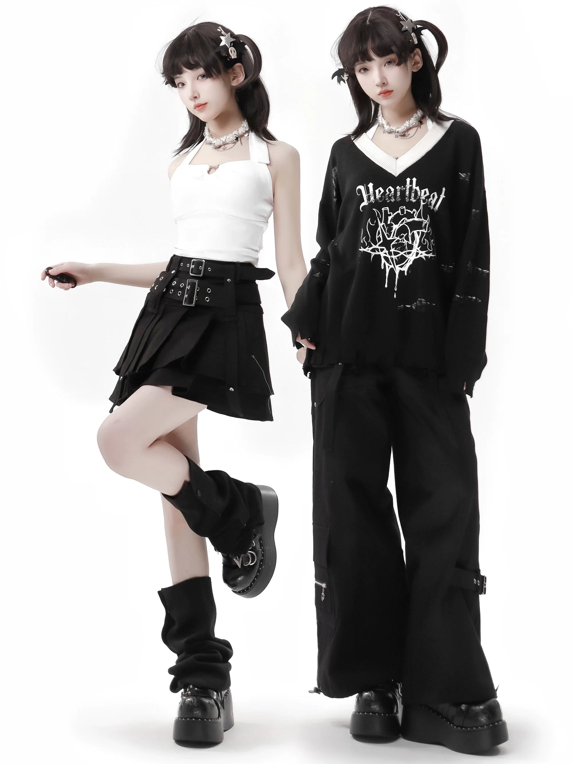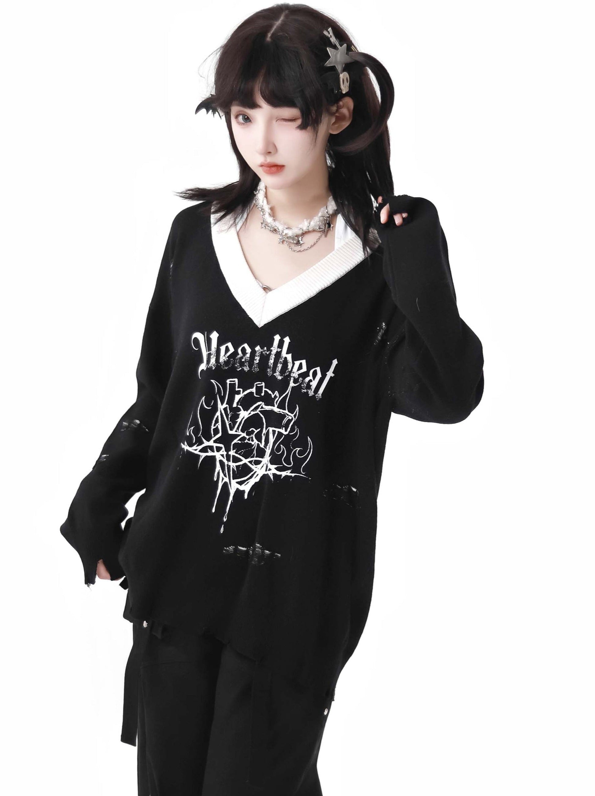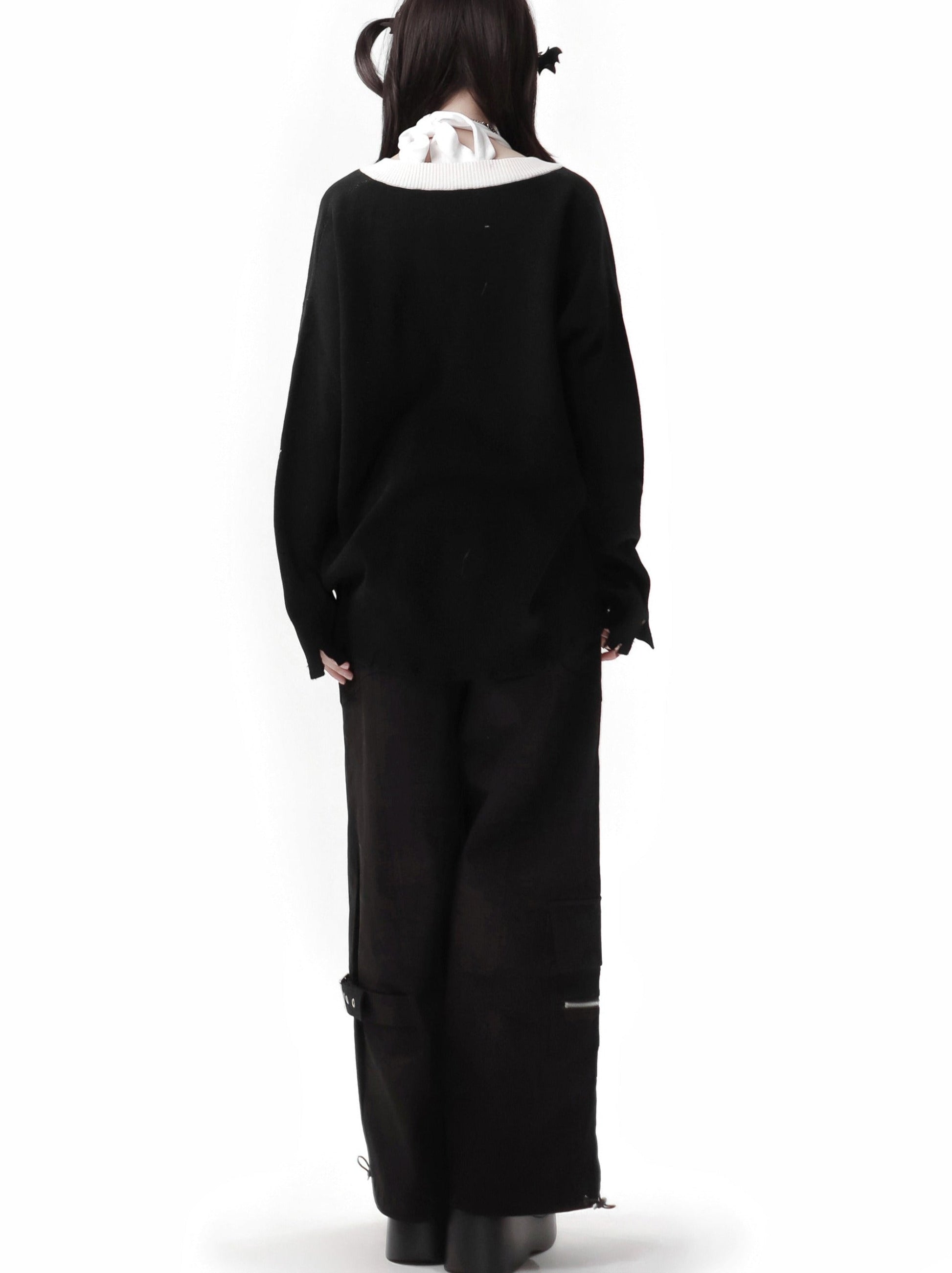 トップス ダーク スプリング ニット キャミソール プリント Vネック ホルターネック ボウ サマー