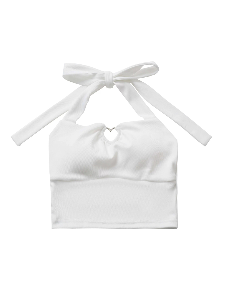 このトップスはとにかく可愛い!春らしいダークなニット素材に、スタイリッシュなキャミソールプリント、そして体型を美しく見せるVネックが、夏のワードローブにぴったり。ホルターネックとキュートなリボンが遊び心のある魅力を添えています。このマストハブアイテムで、涼しくキュートに過ごしましょう。