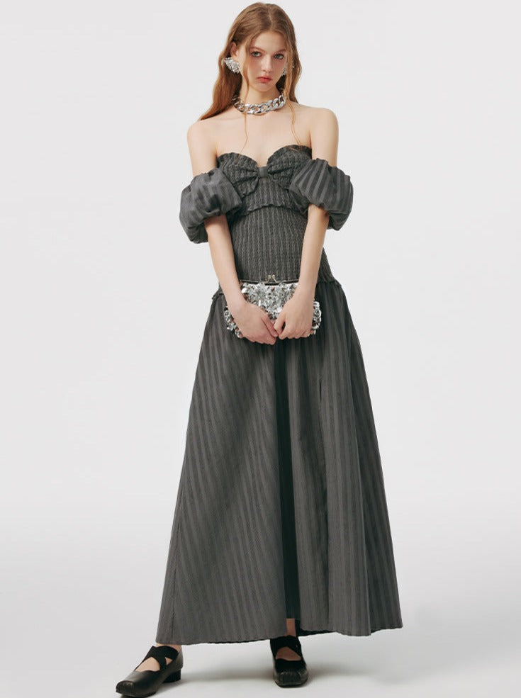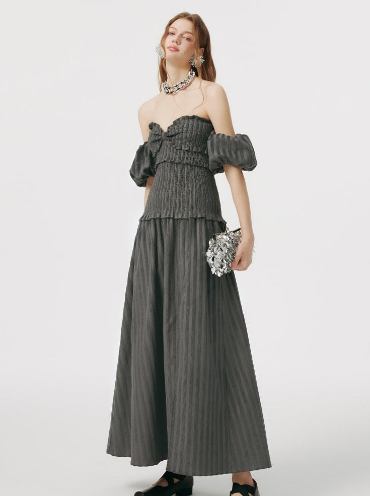 ロングチューブトップが特徴の、愛らしいオフショルダードレス。暑い夏の日にぴったりです。このマストハブドレスで、涼しくスタイリッシュに過ごしましょう。