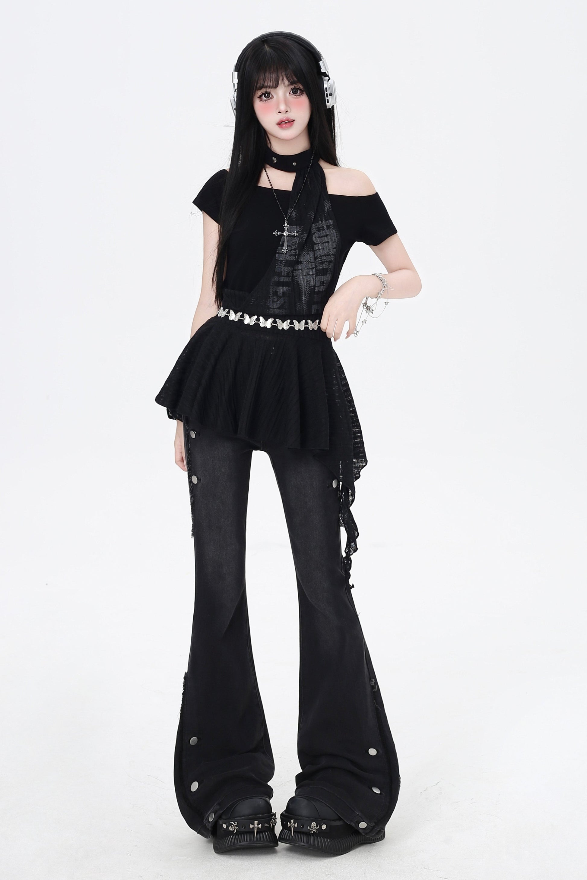 黒と白のオールドスクールロリータファッションドレス蝶結びロリータJSKセット
