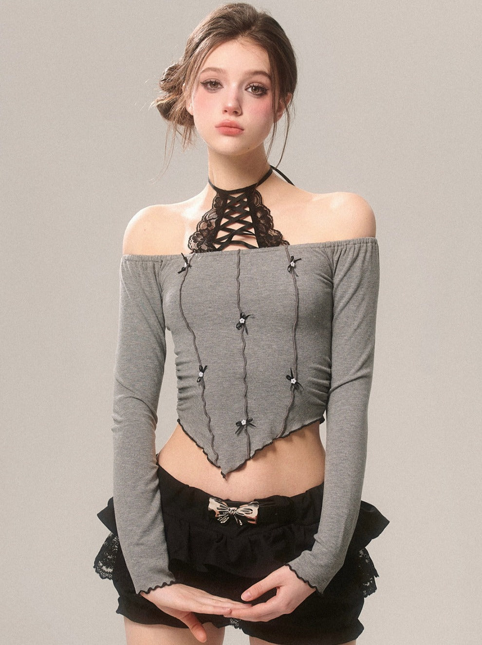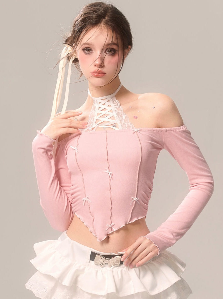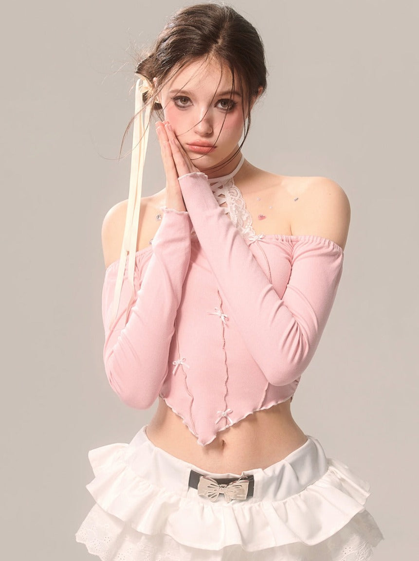甘くてアシンメトリーなトップスで、個性をアピール。トップスのリボンがキュートなアクセントを添えます。どんなシーンにもぴったりで、人混みの中でもひときわ目を引くこと間違いなし。