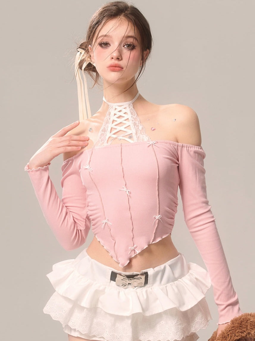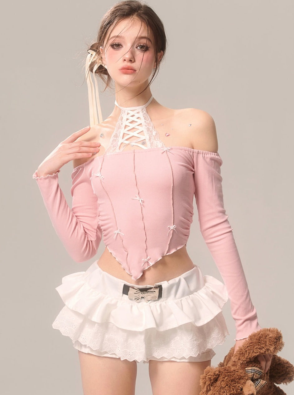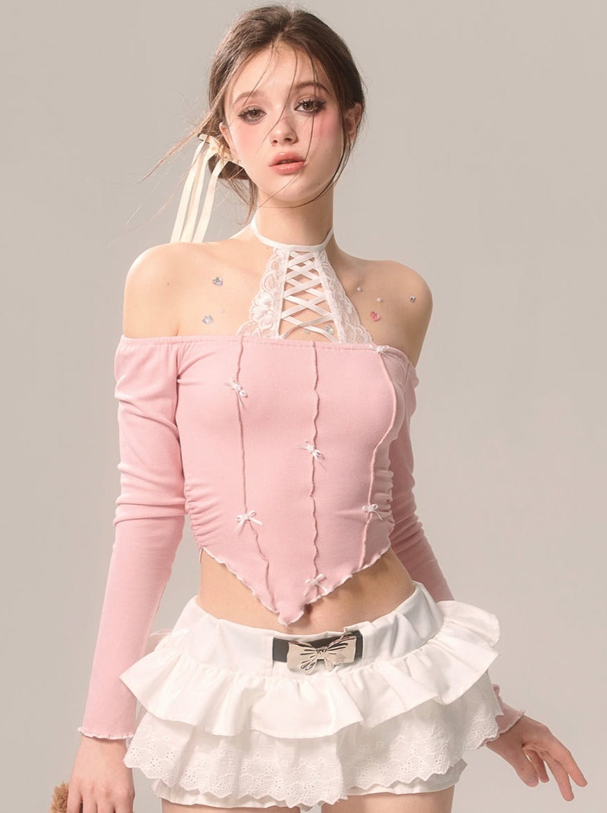 甘くてアシンメトリーなトップスで、個性をアピール。トップスのリボンがキュートなアクセントを添えます。どんなシーンにもぴったりで、人混みの中でもひときわ目を引くこと間違いなし。