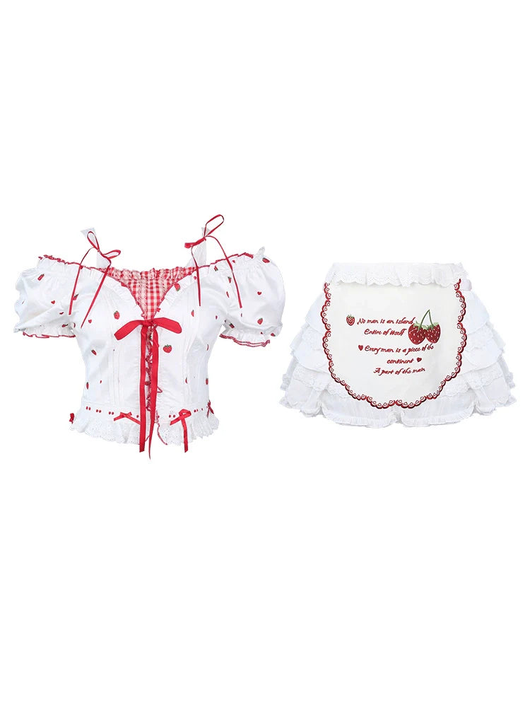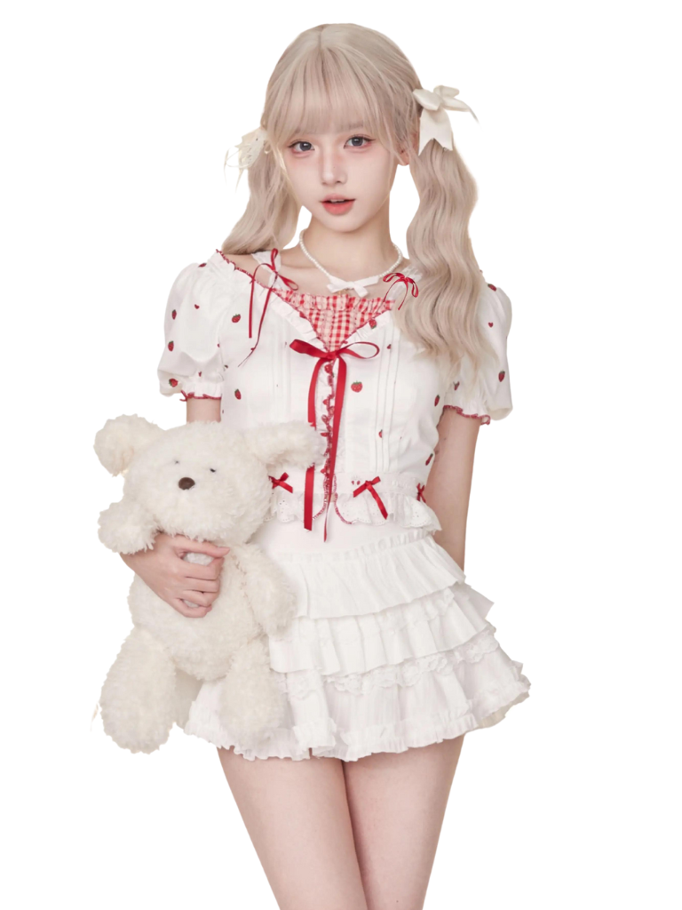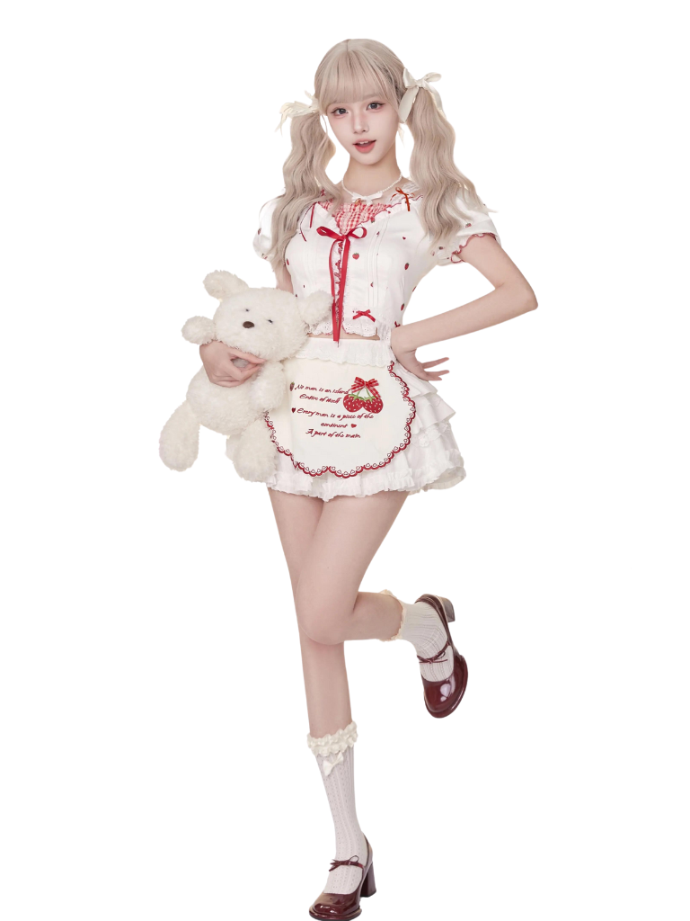 キュートで美味しそうなこのセットには、トップススリーブとケーキパフのストロベリームーススカートが含まれています。上質な素材を使用し、快適なフィット感で着こなせるデザインなので、くるくる回したり、どんな服装にも甘いアクセントを添えたりと、様々なシーンで活躍します。ワードローブに、この可愛くて美味しい一着をぜひ加えてみてください。