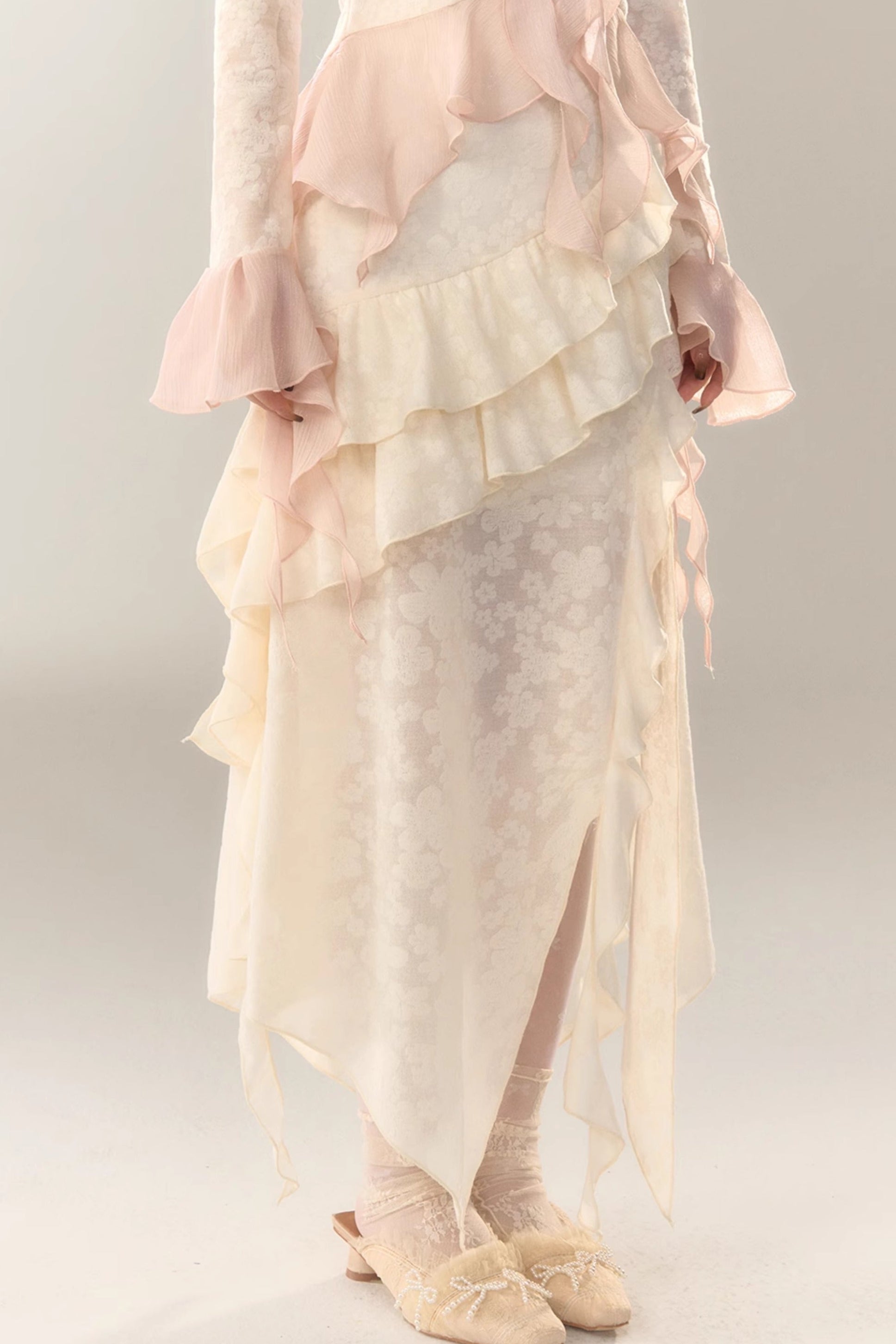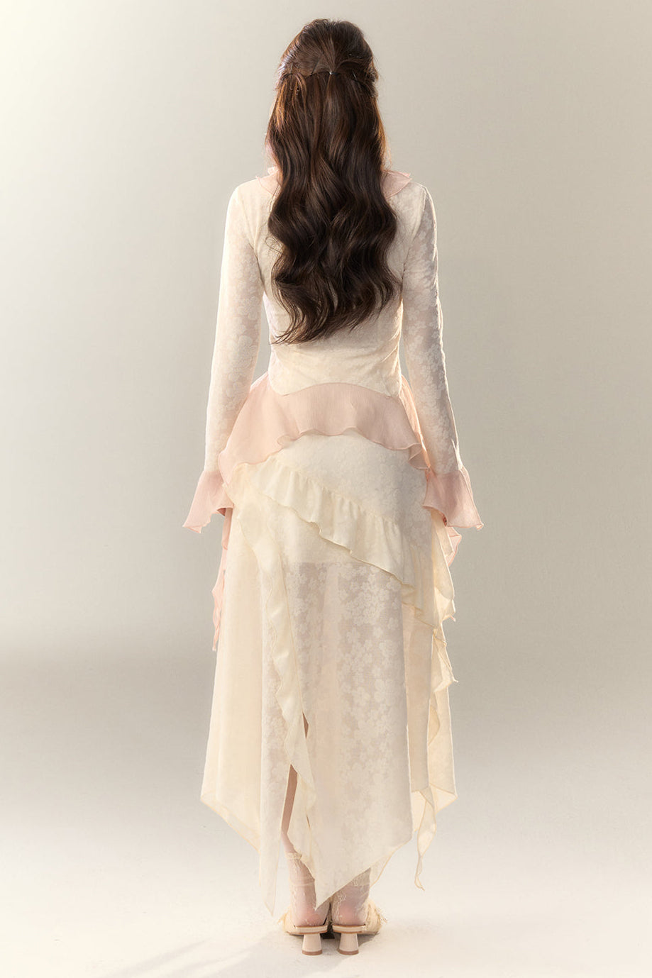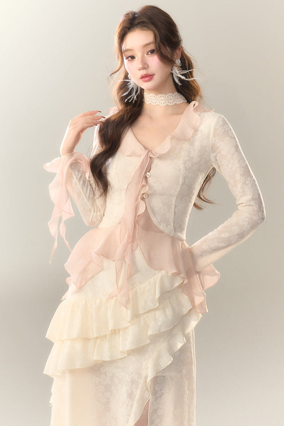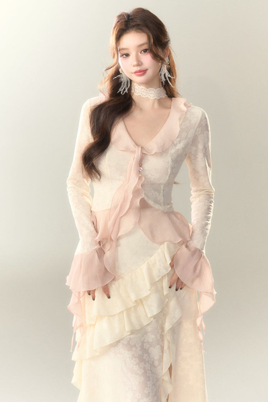 ❤スイートなフリルシアートップス+フリルロングスカート❤
