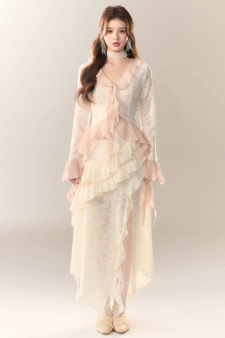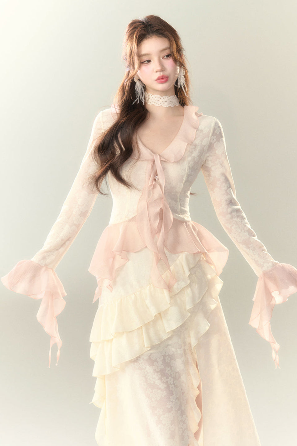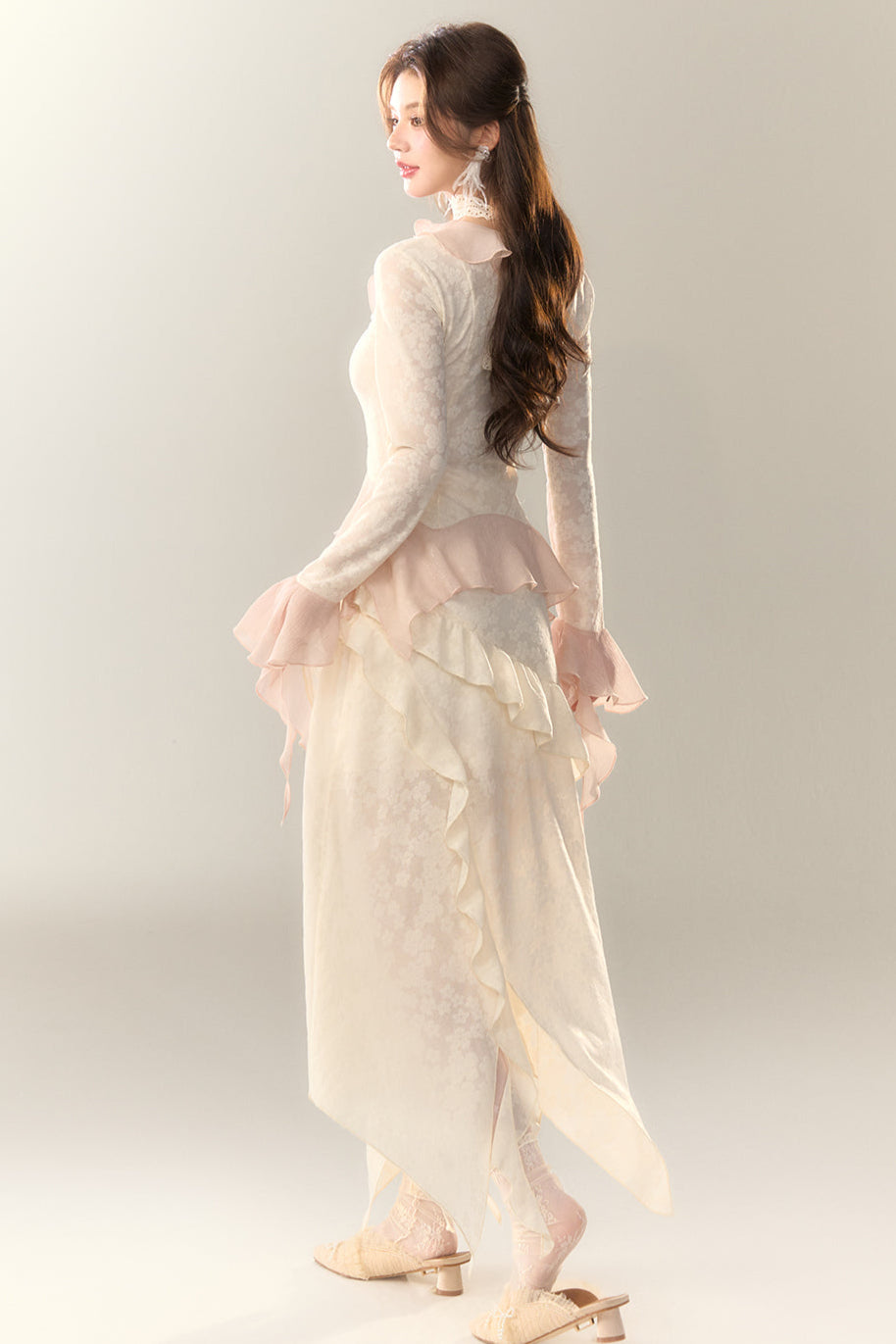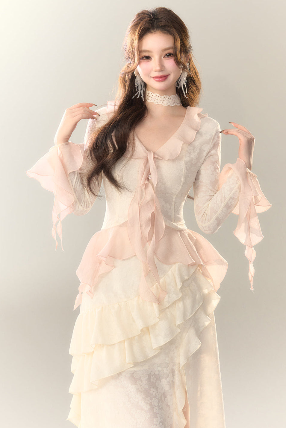 ❤スイートなフリルシアートップス+フリルロングスカート❤