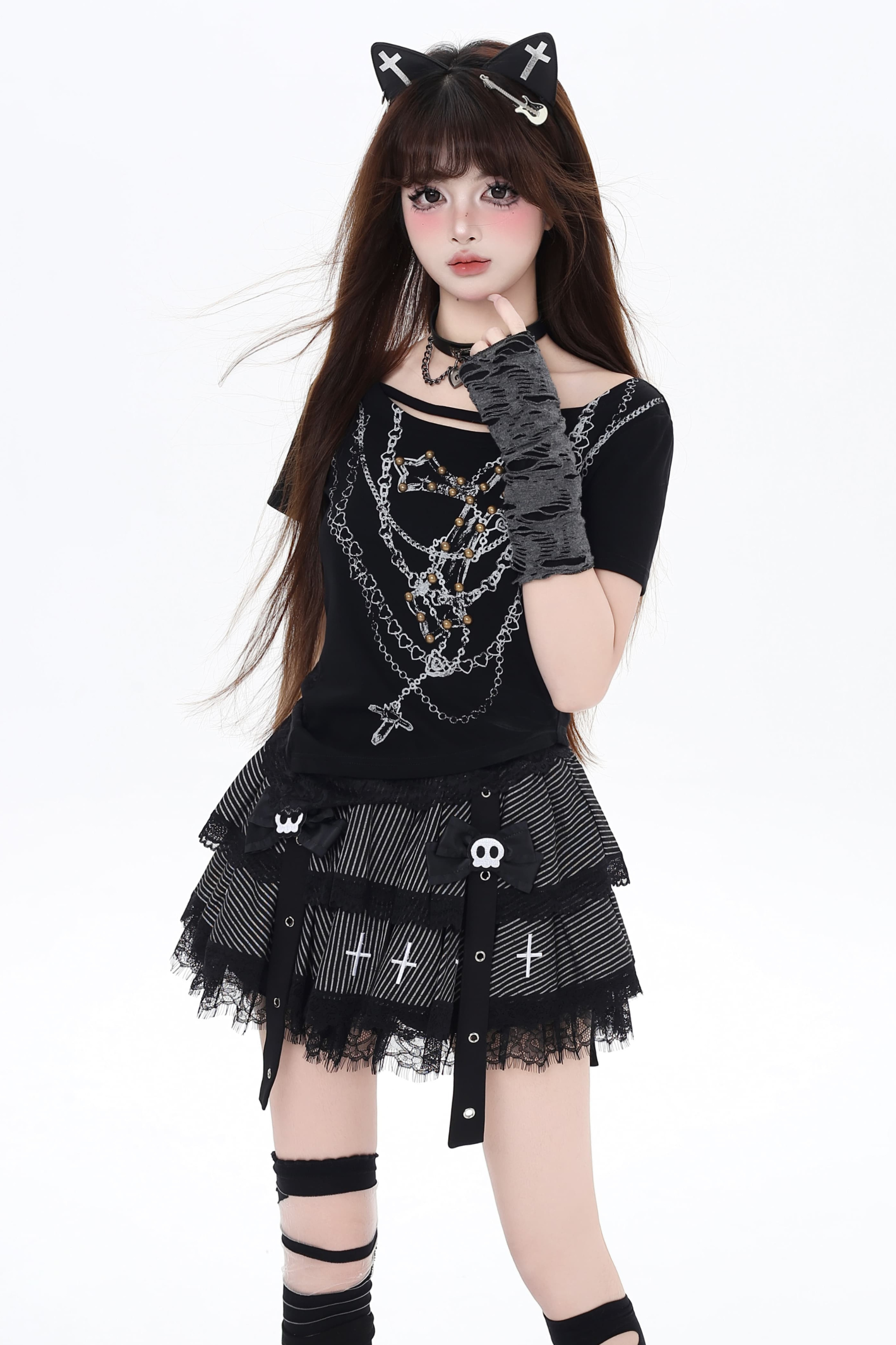 黒と白のオールドスクールロリータファッションドレス蝶結びロリータJSKセット