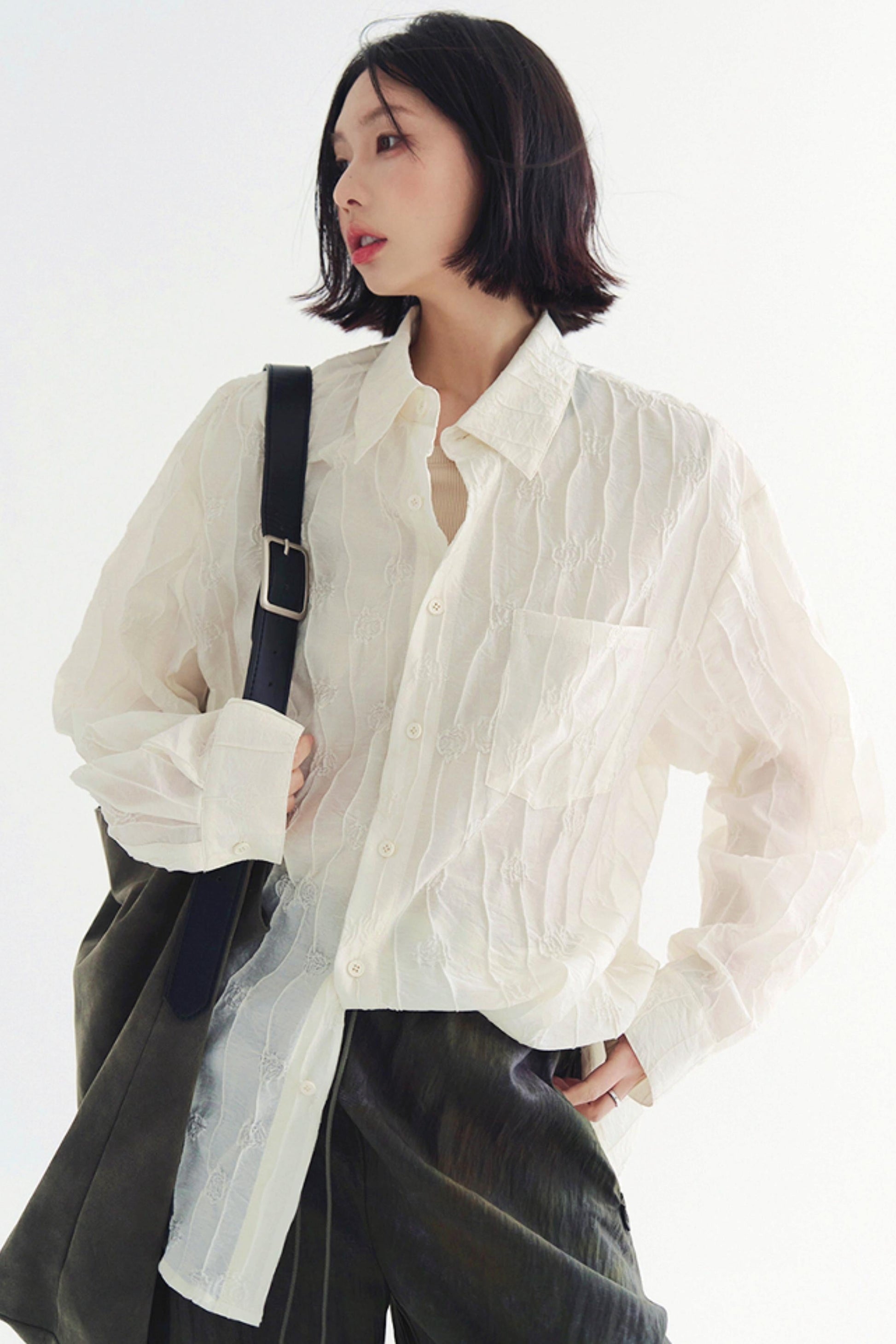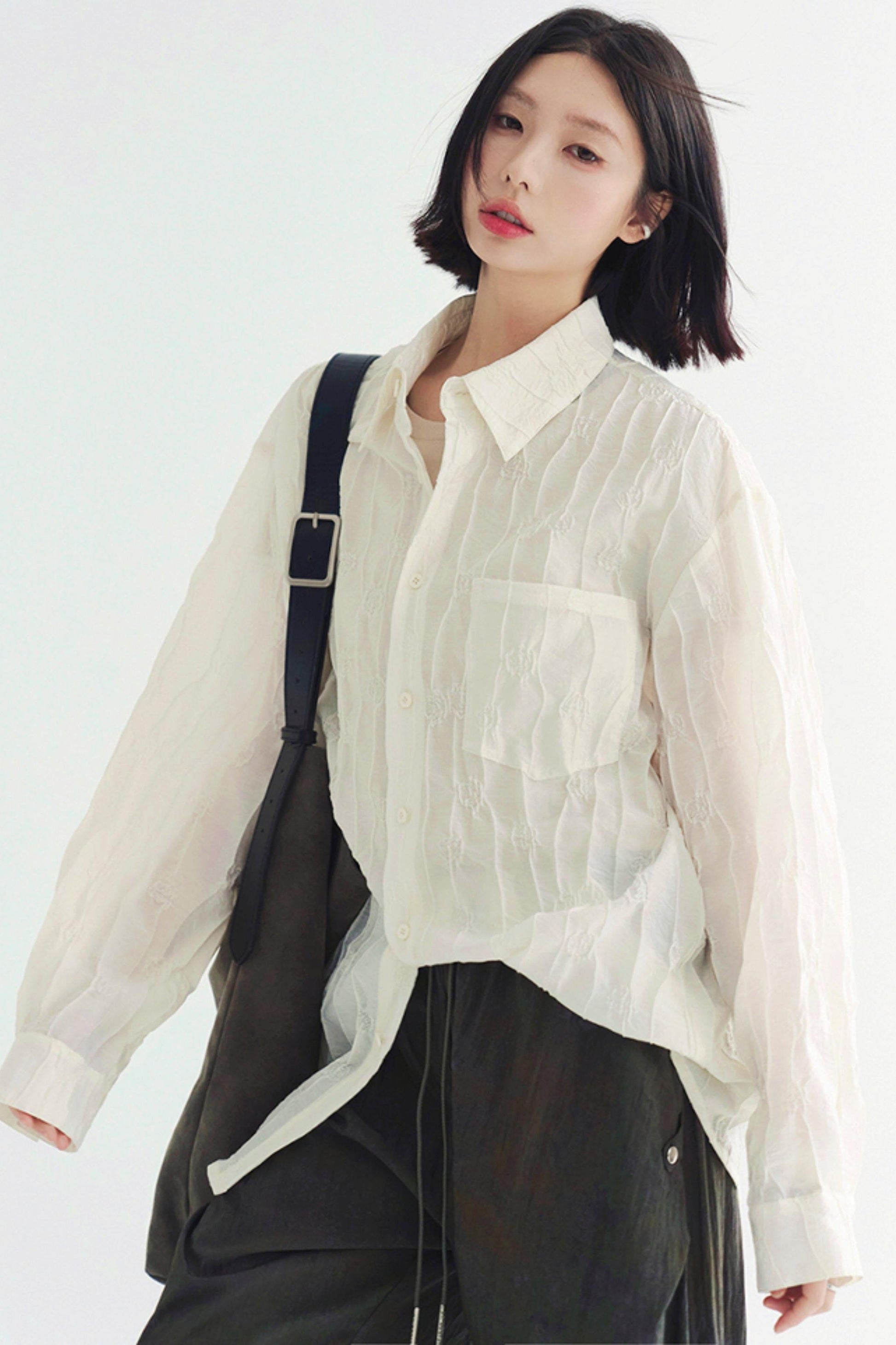 トップス 軽量 無地 長袖