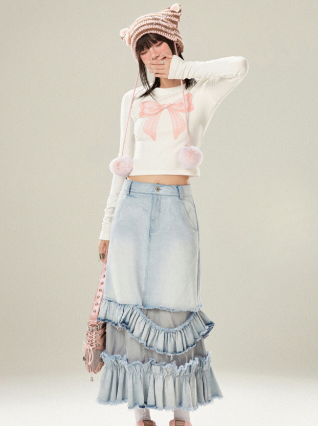 青と白のオールドスクールロリータファッションドレス 蝶結びディテール JSK セット