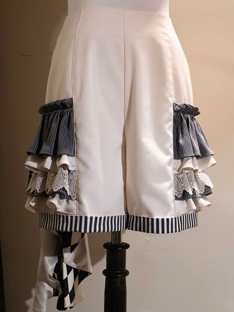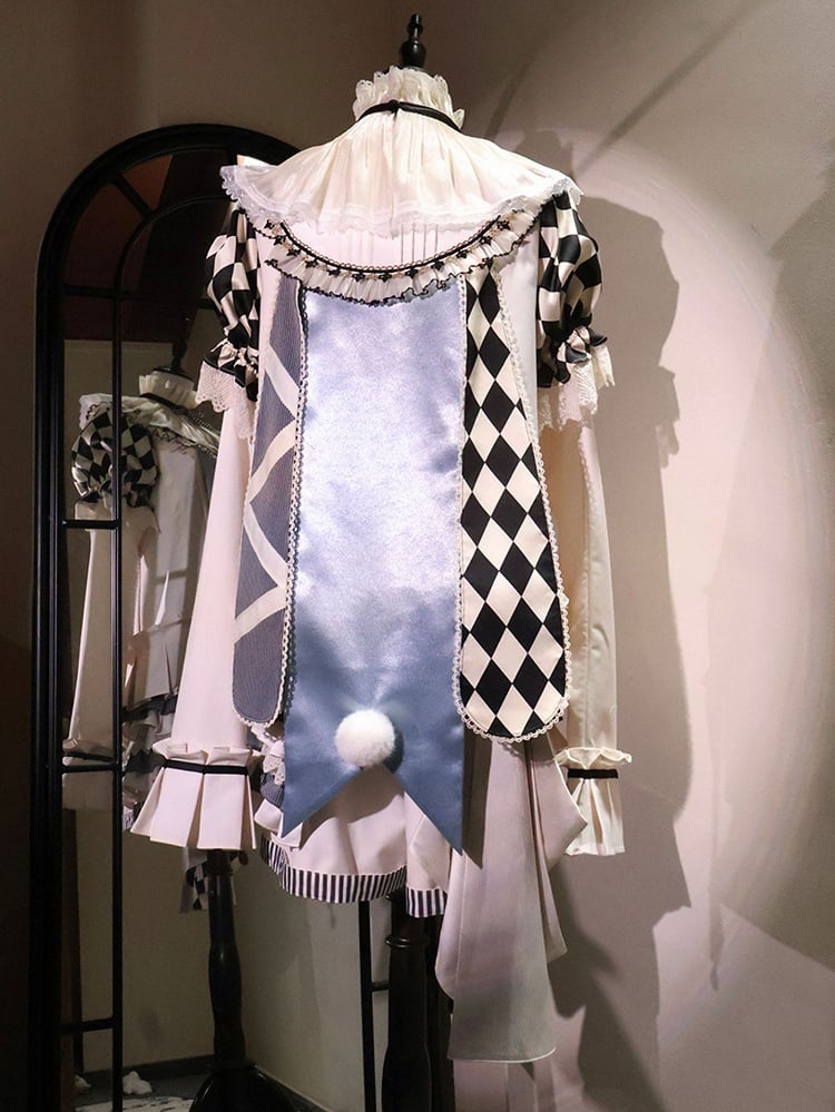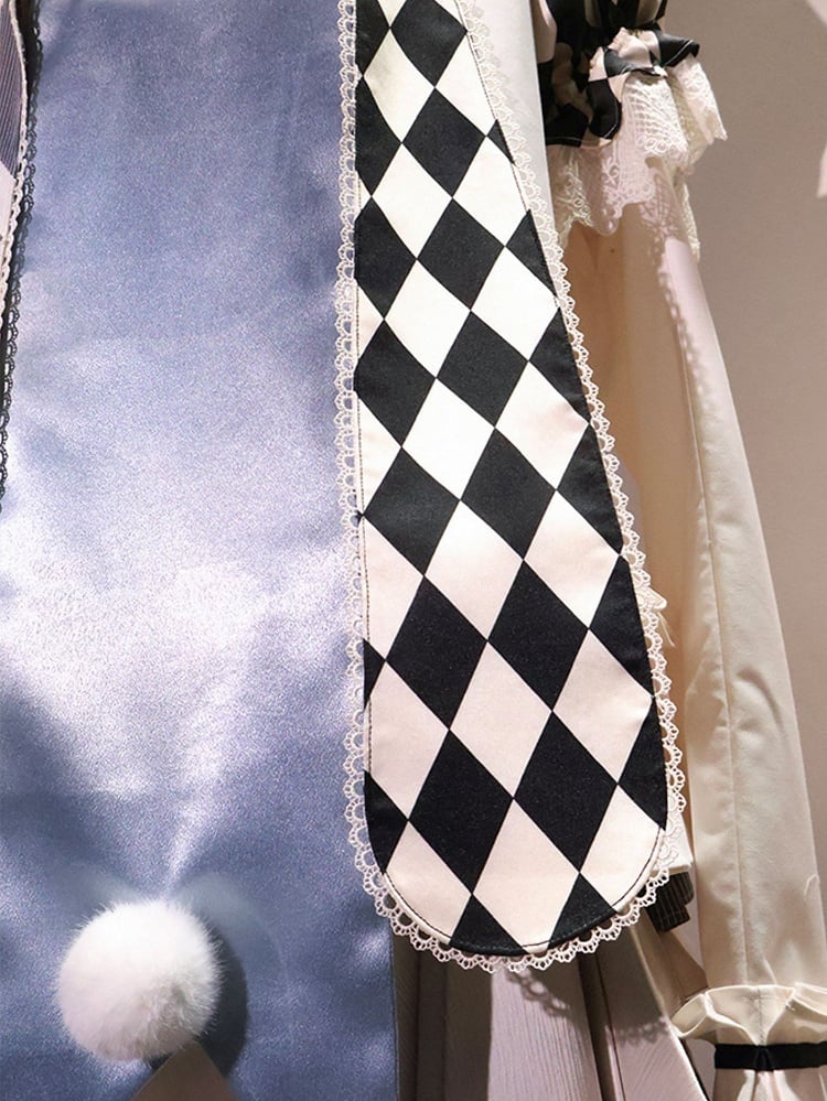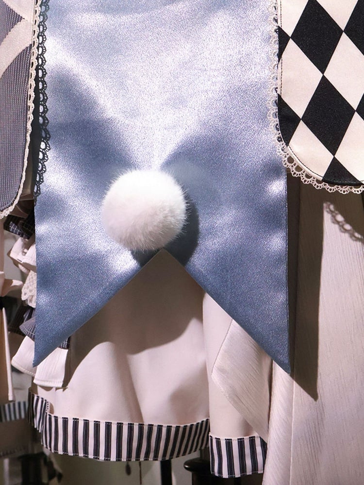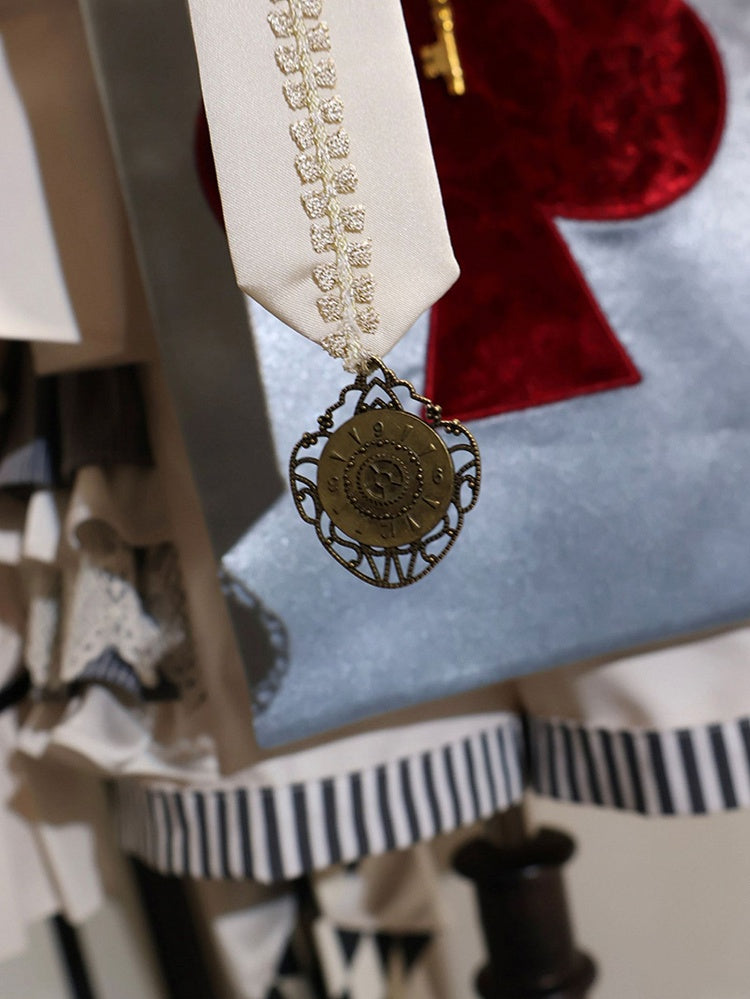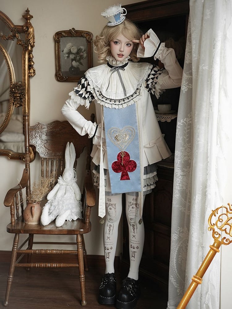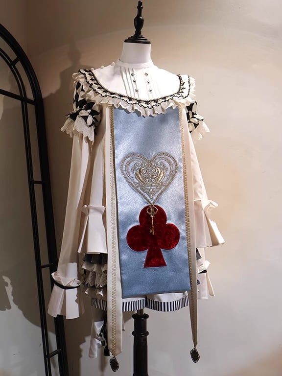 ライトブルーの不思議の国のアリスバイブスポーカーカードテーマ王子ファッション衣装 - シャツ + ショートパンツ + 取り外し可能な襟 + トレーン