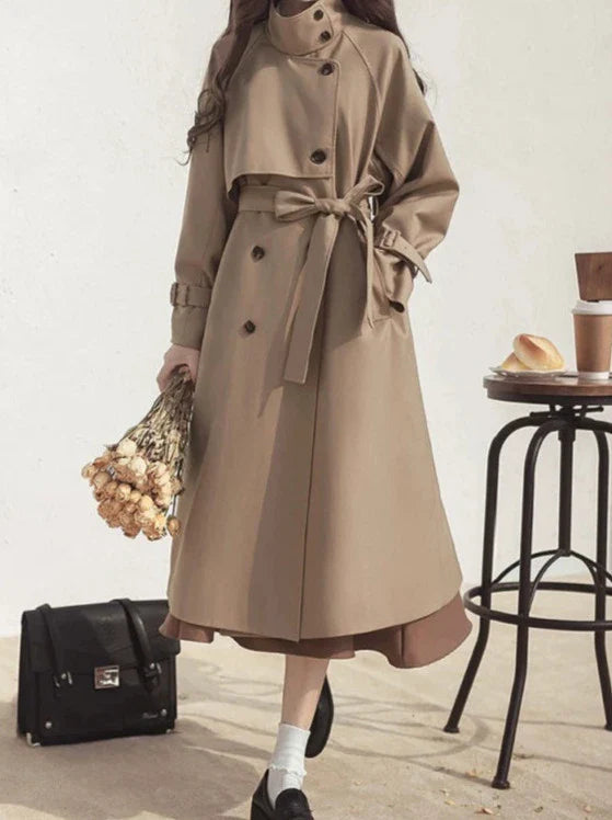 トレンチコート レトロスタイル ブリティッシュカーキ エレガント