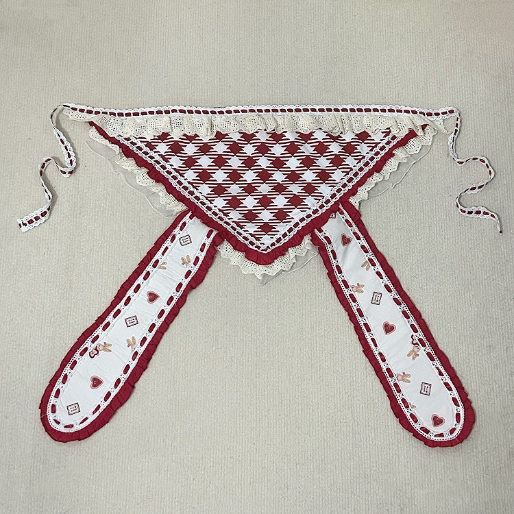 三角形のチェック柄の赤いスカーフ(ウサギの耳付き)